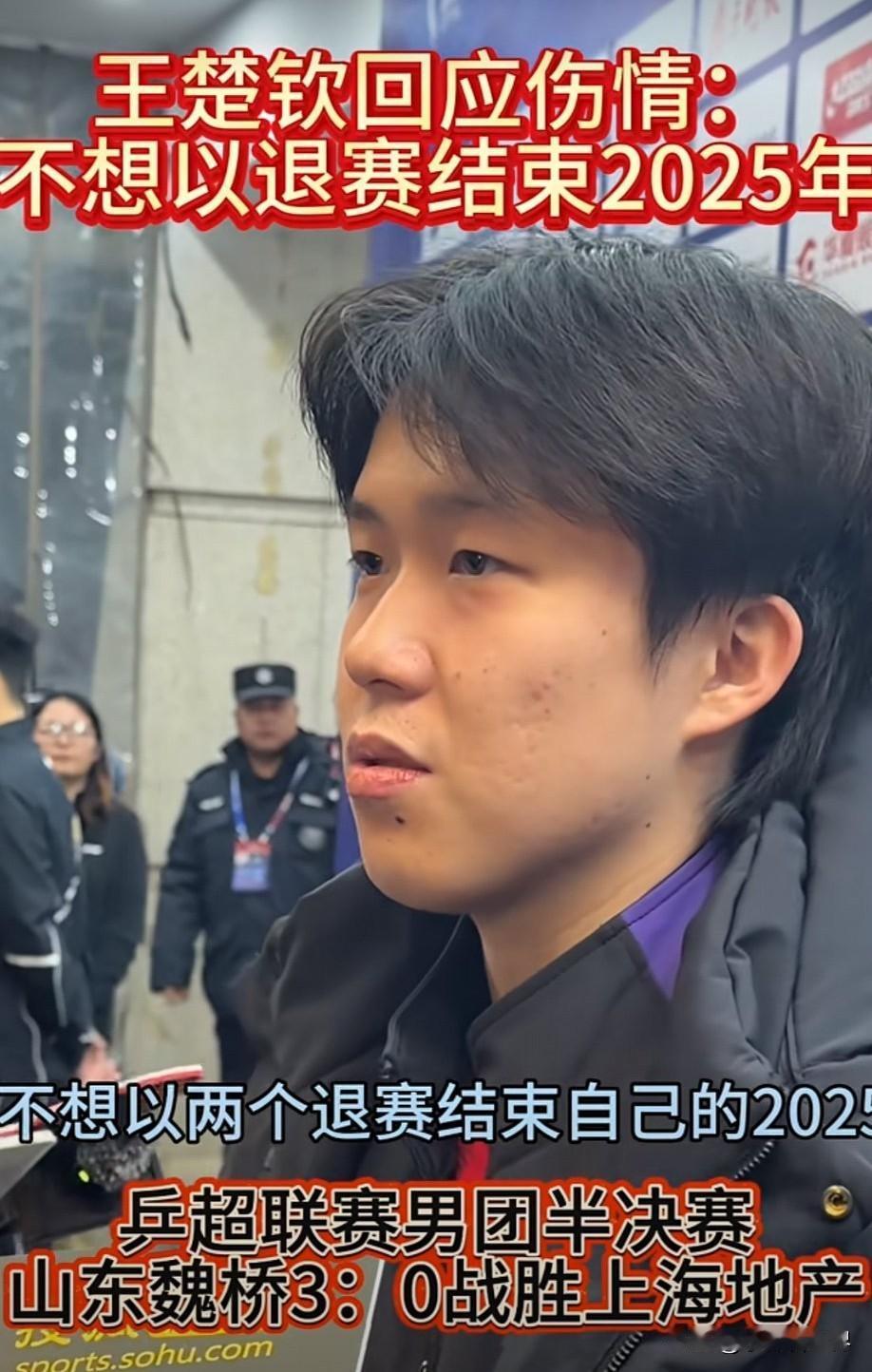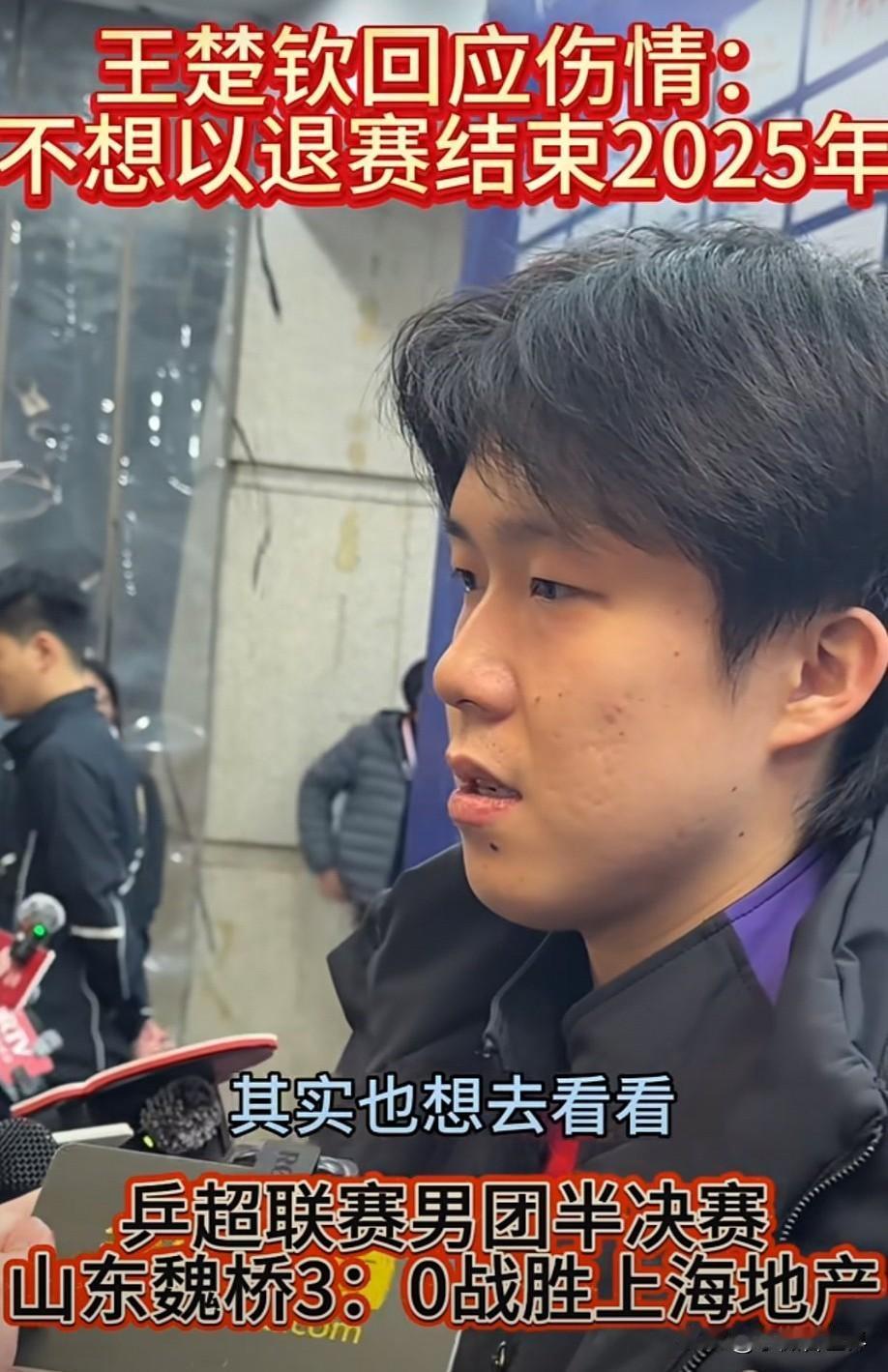今天是个好日子,乒超联赛总决赛即将开打!头哥很可能要上场打球哟! 在昨天的半决赛中,山东魏桥3:0上海地产,与黄石华新会师2025乒超联赛男团决赛。真是可喜可贺! 自从WTT香港总决赛最后,莎莎楚钦因伤退赛后,舆论一时哗然。很多人支持他们健康第一,祝愿他们早日康复。 在这几天的乒超联赛总决赛关头,莎莎因为身体原因,最终还是没有出现在南京比赛现场。 不过头哥出现了,还代表运动员上台宣誓。针对记者采访,他回应伤情。 并不是完全恢复了,只是不想以两个退赛结束2025年的赛程。所以要来看看,不想留下遗憾。 要知道王楚钦在2025年成绩斐然,已斩获12个冠军,其中包括6个单打冠军。 许多网友面对头哥的伤情,也表示了理解支持,并祝福他今天的比赛能代表自己的队伍勇夺冠军,给自己完美结局。胜利属于山东魏桥。 也有人质疑那么短时间他的伤真的好了吗?不同于莎莎脚的受伤,头哥的伤在腰背部,要说完全康复估计也不太现实。 可是莎莎不来,头哥也不来,估计各方面都不答应。运动员身体是自己的,又不仅仅属于自己,有时必须顾全大局啊。友友,你们说呢?