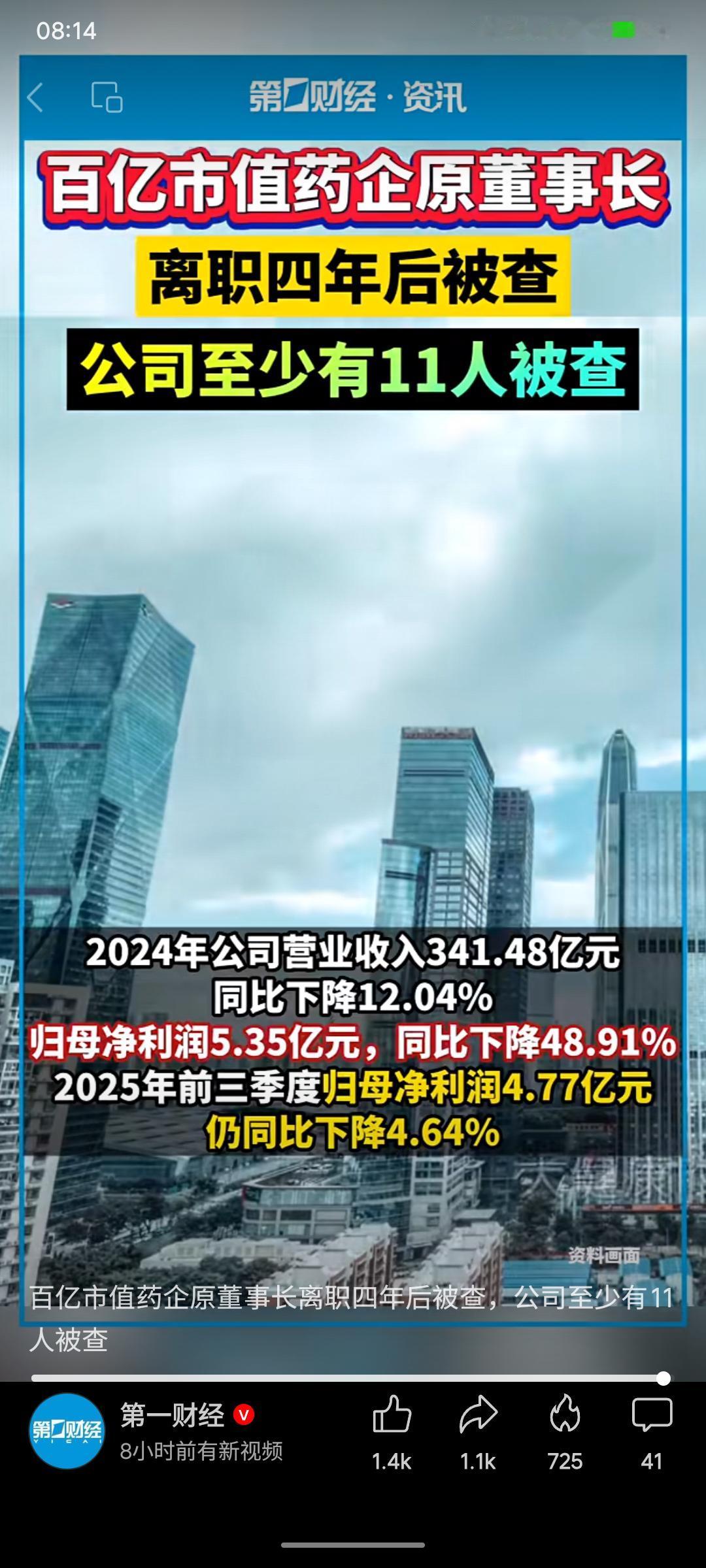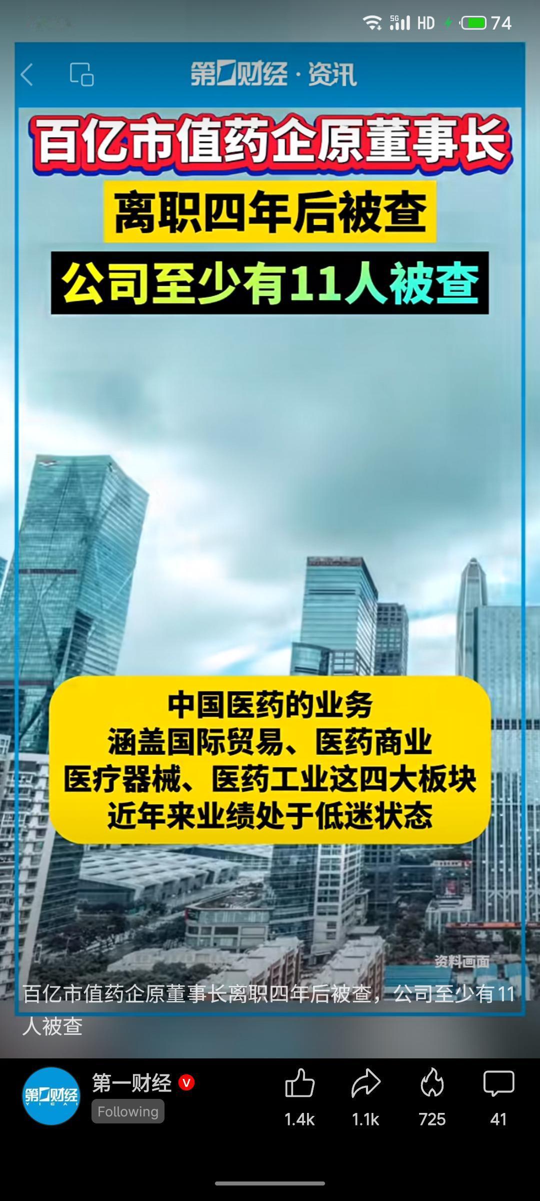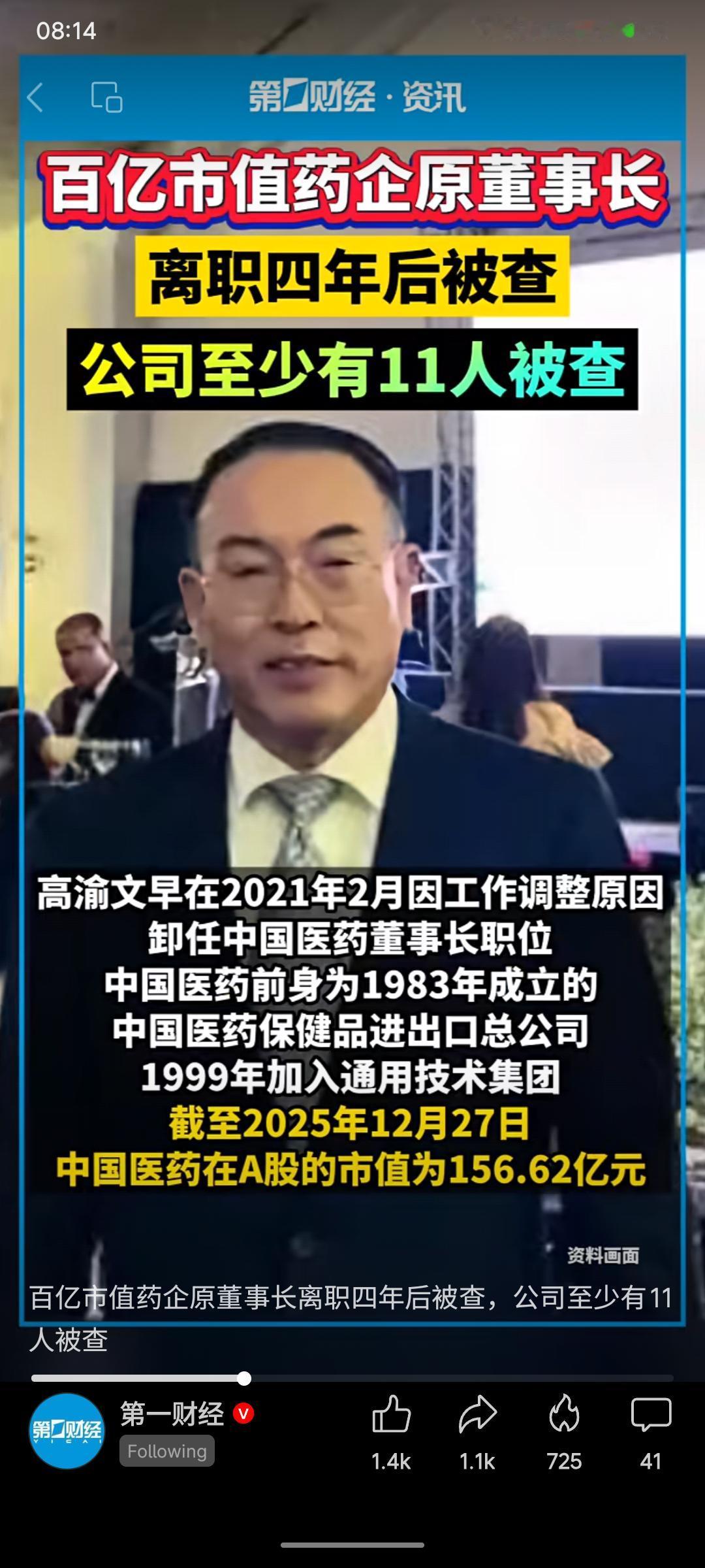 中国医药(原中国医药保健品进出口总公司)原董事长高渝文,在卸任四年后于近期被查。该公司自2024年以来持续反腐,包括原高管及下属公司人员在内,已有至少11人被查。这家市值超150亿元的上市企业,业务涵盖医药商业、国际贸易等四大板块,近年业绩持续低迷,营收与净利润均呈现下滑态势。此事折射出医药领域反腐的持续性与深入性。