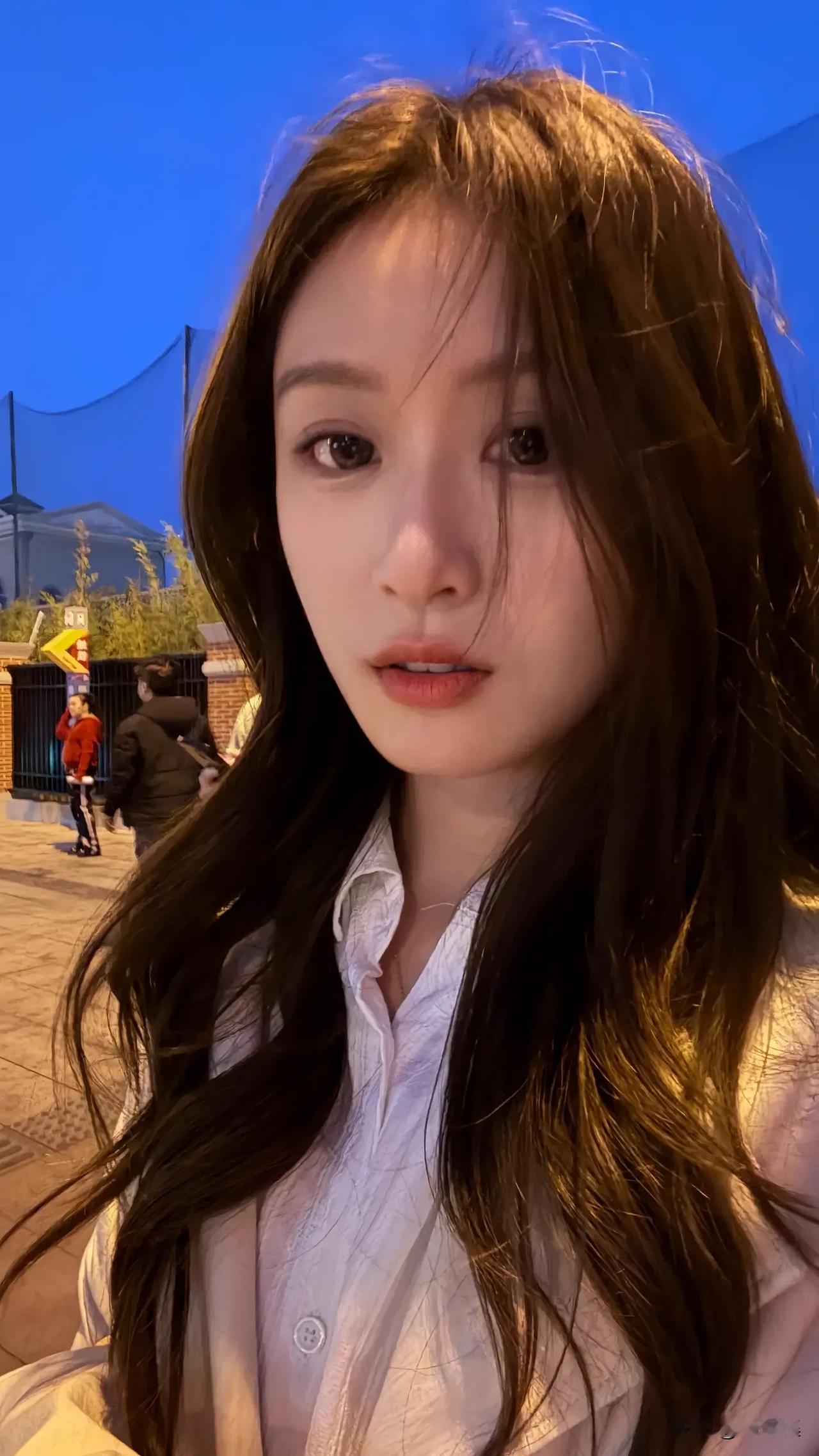 夜色中的温柔瞬间,长发飘飘,白衬衫的清新与夜晚的神秘交织。