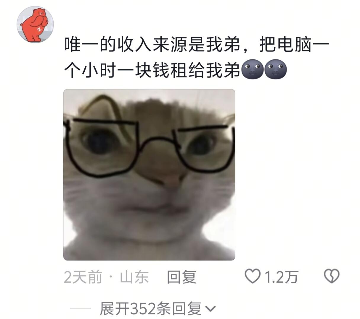 唯一的收入来源是我弟,把电脑一个小时一块钱租给我弟