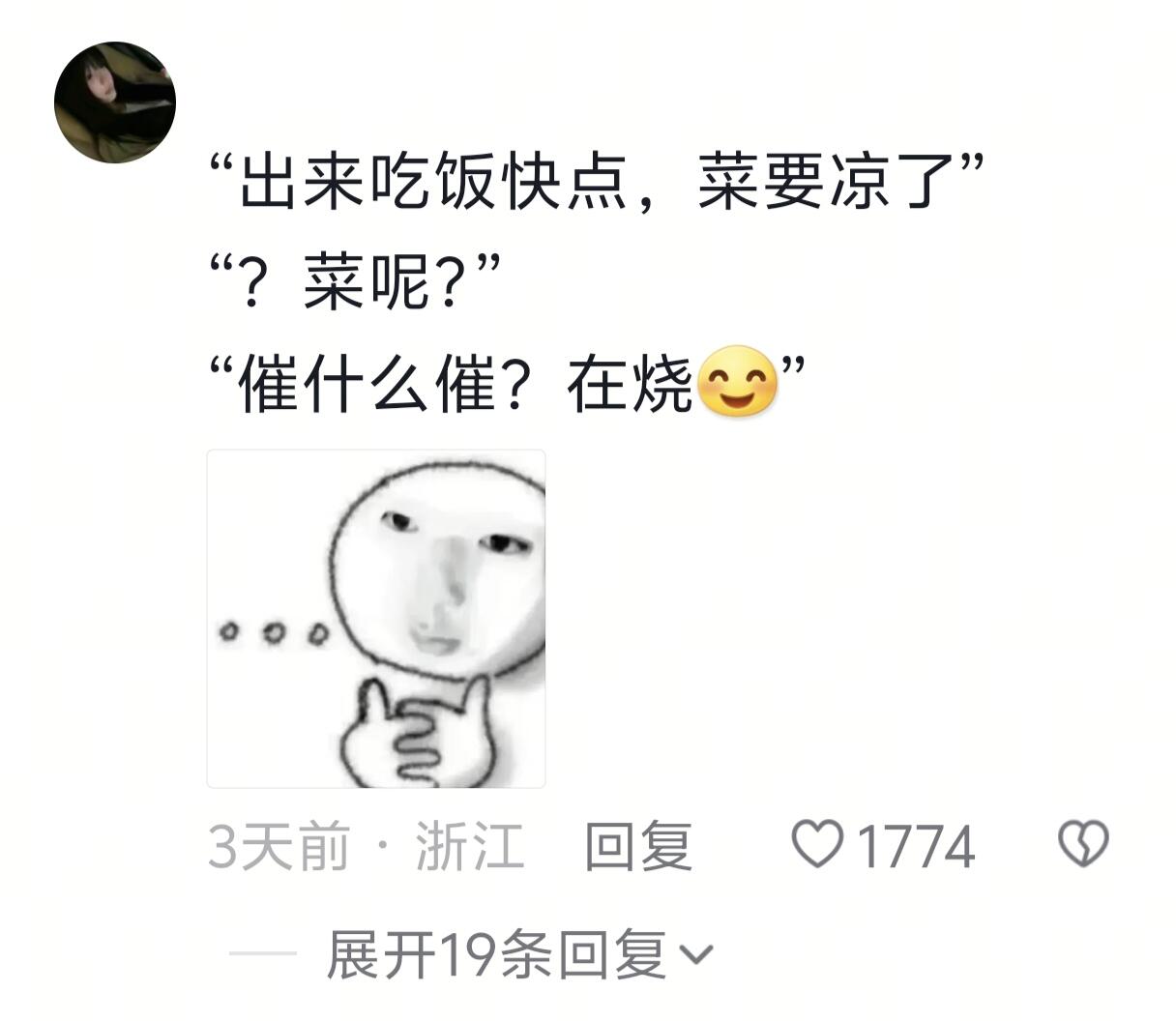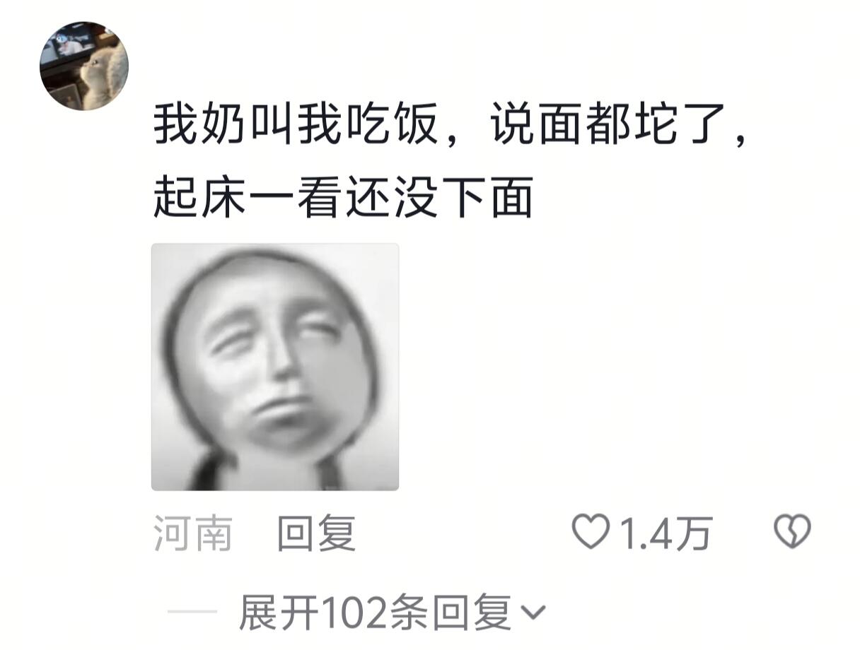 我奶叫我吃饭,说面都坨了,起床一看还没下面