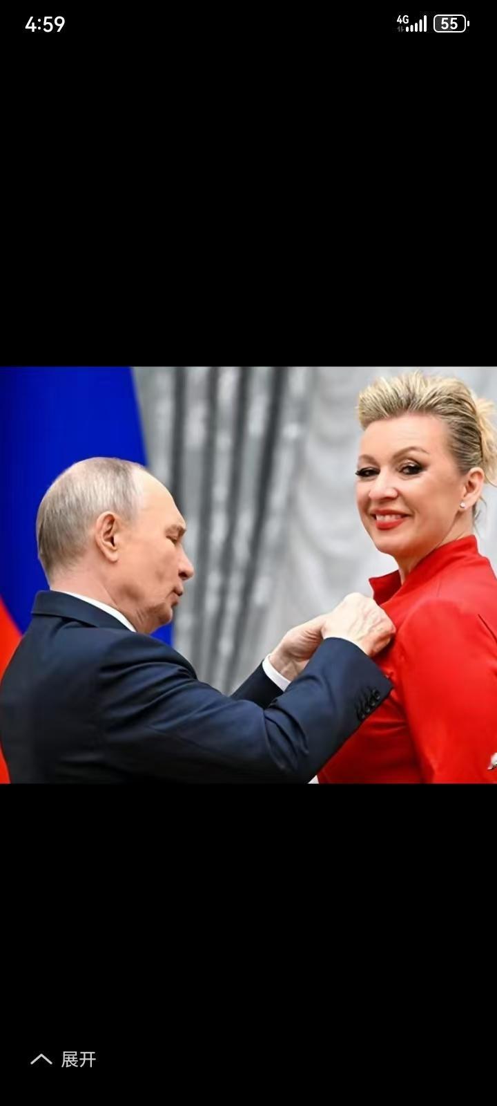 扎哈罗娃该下岗了!脑袋不灵活,也是个傻子来的! 近日扎哈罗娃生日,普大地当日向其颁发勋章,从现场画面看出扎哈罗娃比大地整整高了大半个头。这样显得普大帝又矮又小,让普京偶像们大失所望,以为普大帝高大威武形象嚗了光,让普大帝献丑了。扎哈罗娃那天还偏偏穿高跟鞋,让普京矮扎哈罗娃整整大半个头,完了!亿万中老年妇女的偶像原来是个矮子,扎哈罗娃这样操作太伤普大帝的心了,扎哈罗娃还一脸的笑?笑得出来吗?在一起白混几十年,对老大起码的尊重做不到?基本常识不懂!