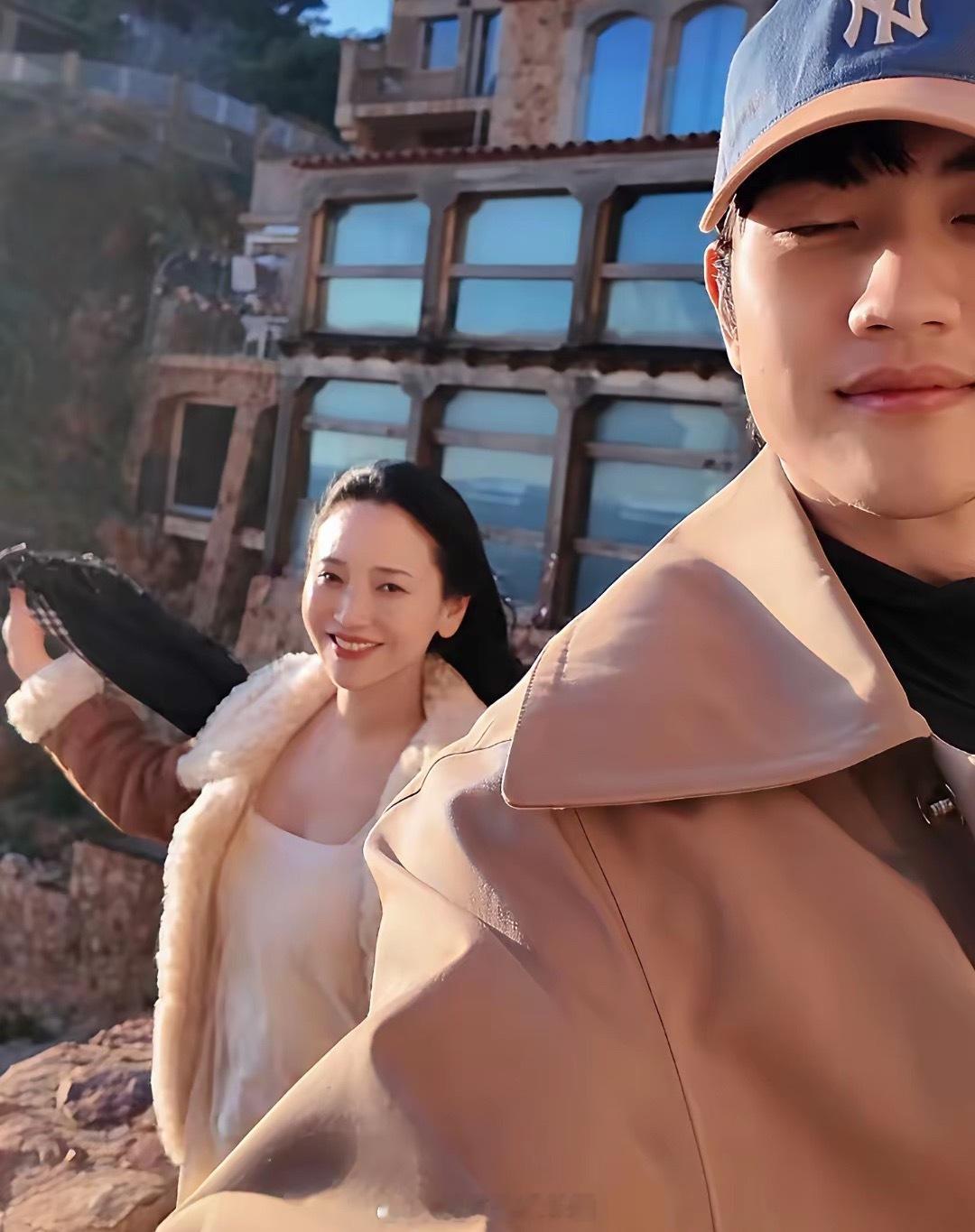 43岁金莎被求婚后首次露面,脸上遮不住的娇俏,未婚夫孙丞潇帮她拿手机拍照,小两口