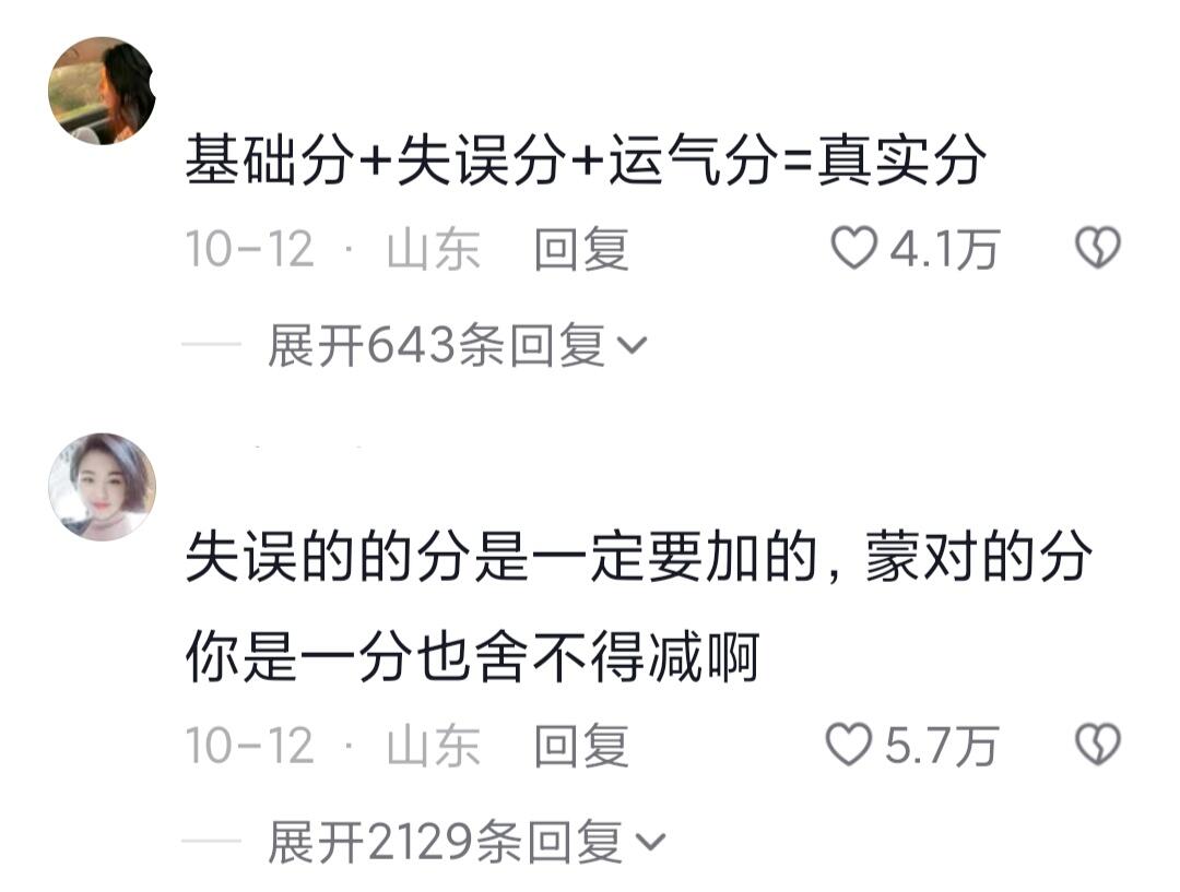 失误的的分是一定要加的,蒙对的分你是一分也舍不得减啊