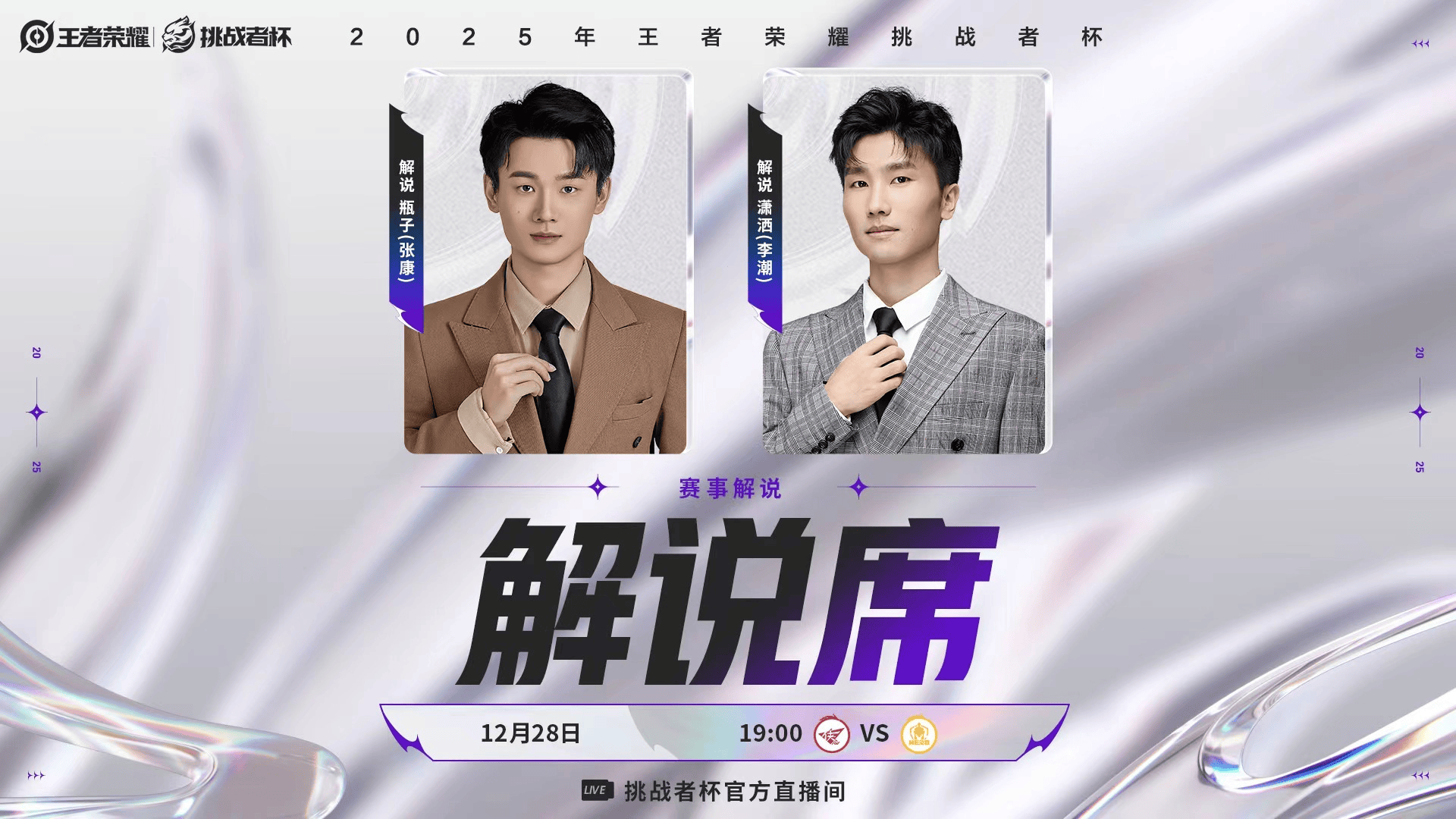 解说席:解说瓶子(张康)解说潇洒洒(李潮)