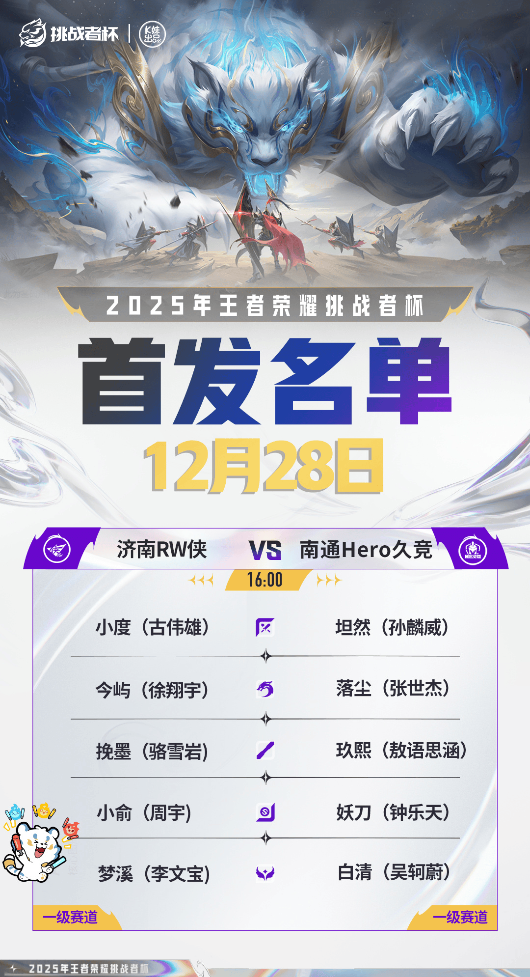 2025王者荣耀挑战者杯双败淘汰赛D7[首发名单]送达!