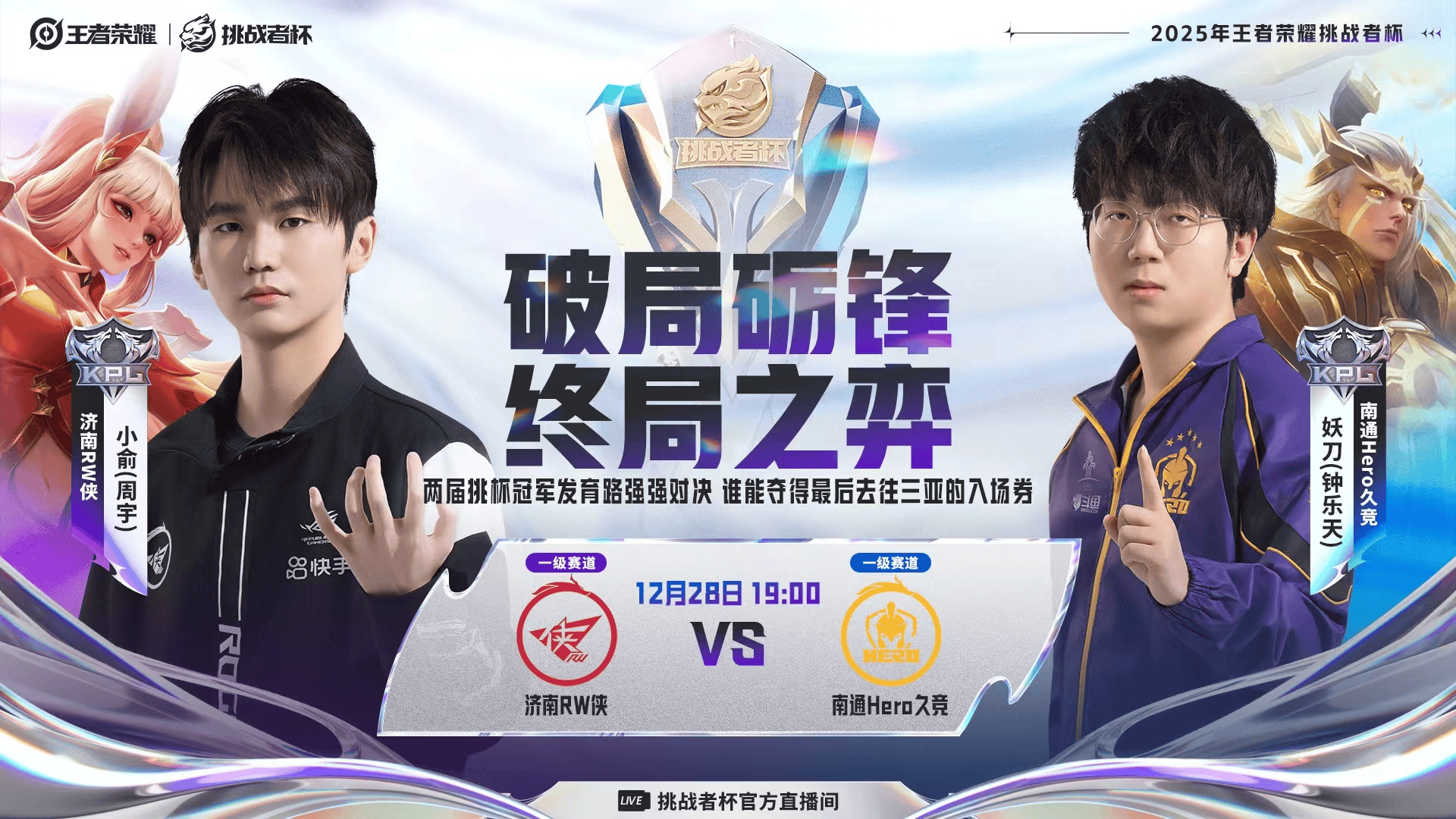 败者组决赛开战,此刻距离决赛仅一步之遥!济南RW侠-王者荣耀对阵南通Hero久竞,同样是背靠背作战,谁能顶住强压战胜对手,拿下前往三亚的最后一张门票?