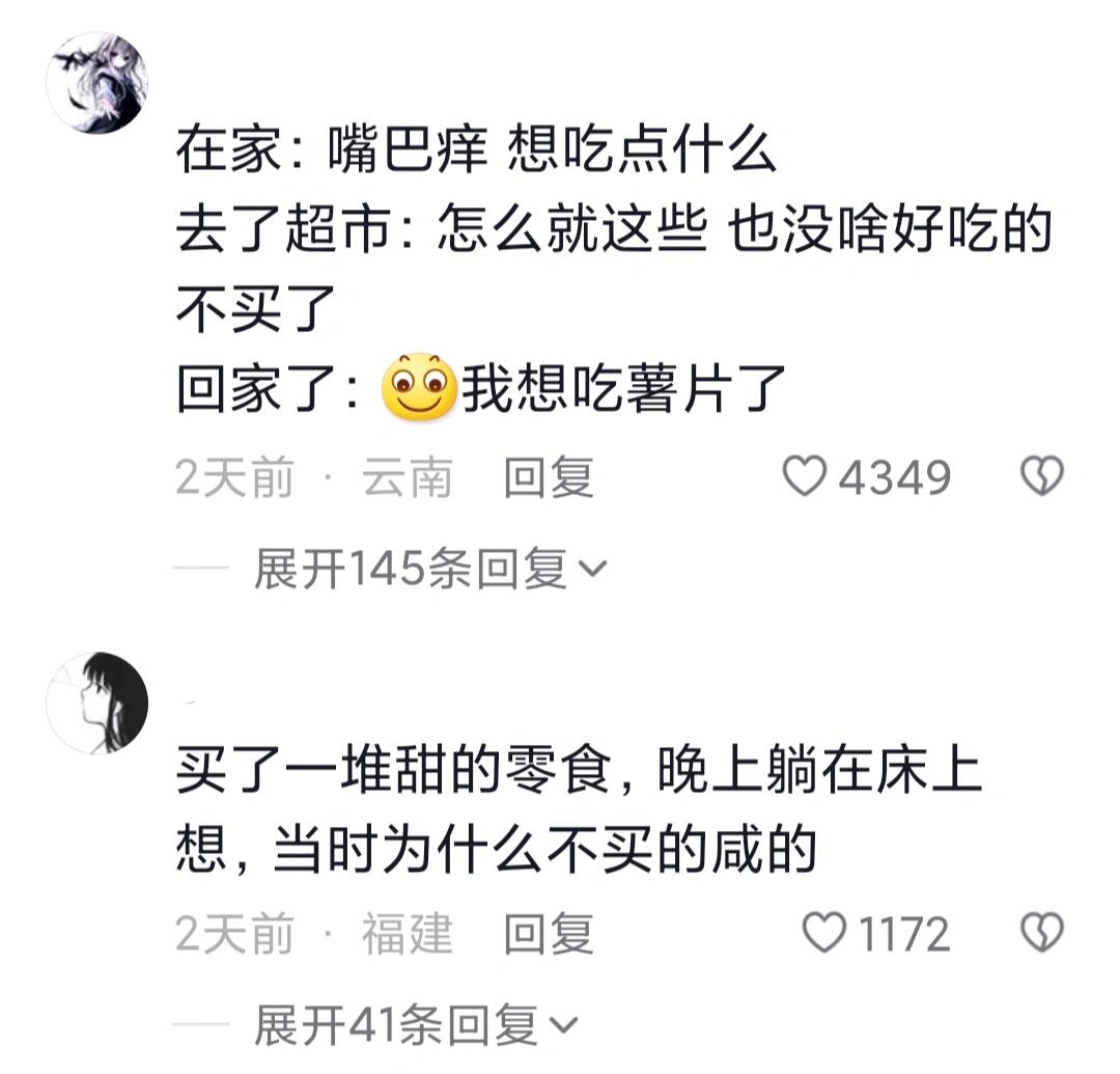 买了一堆甜的零食,晚上躺在床上想,当时为什么不买的咸的