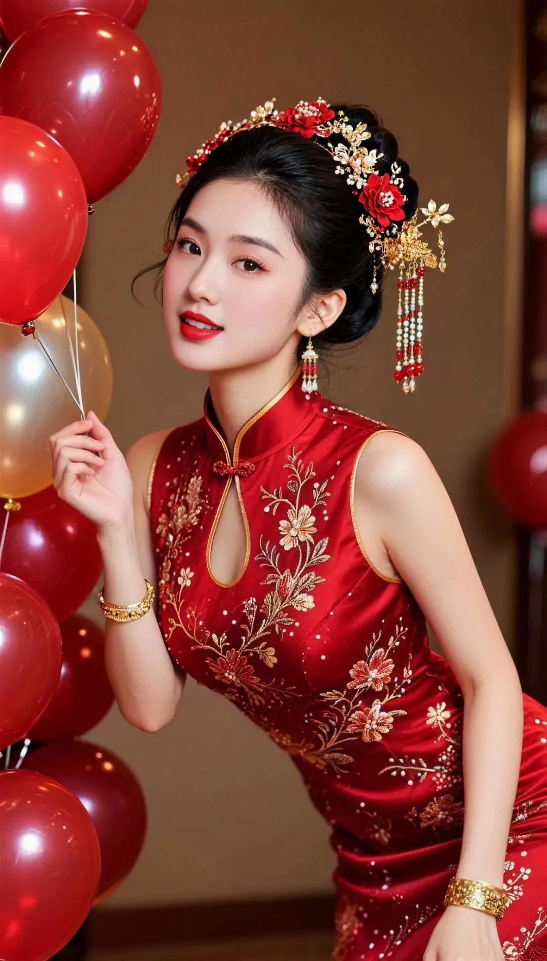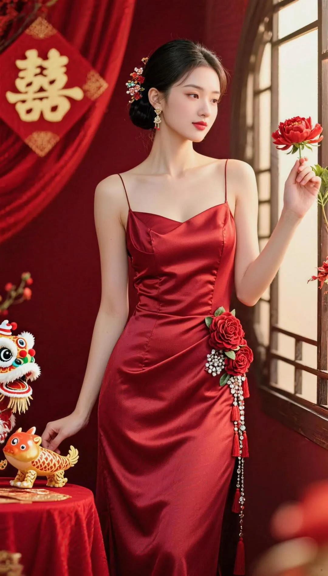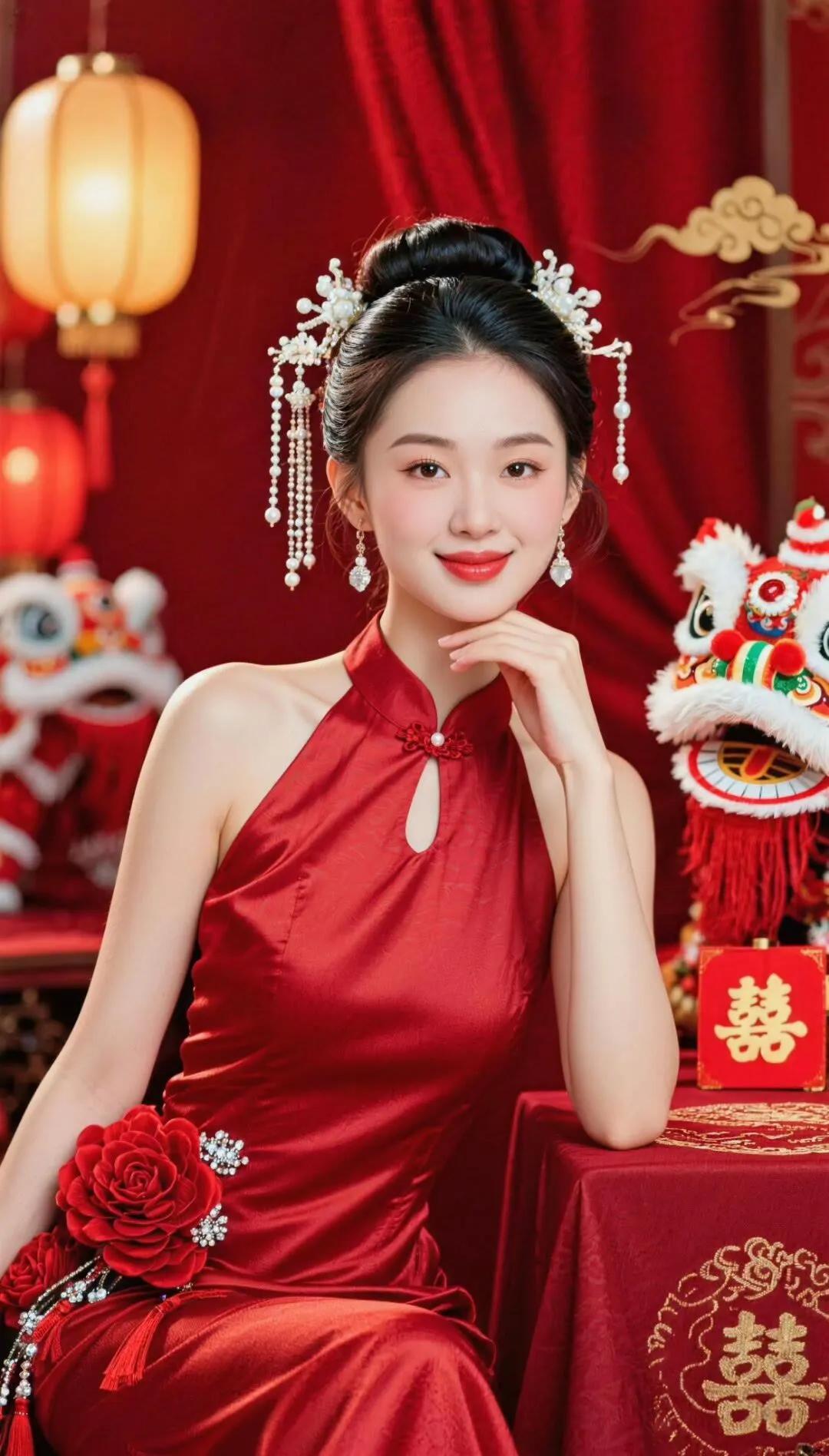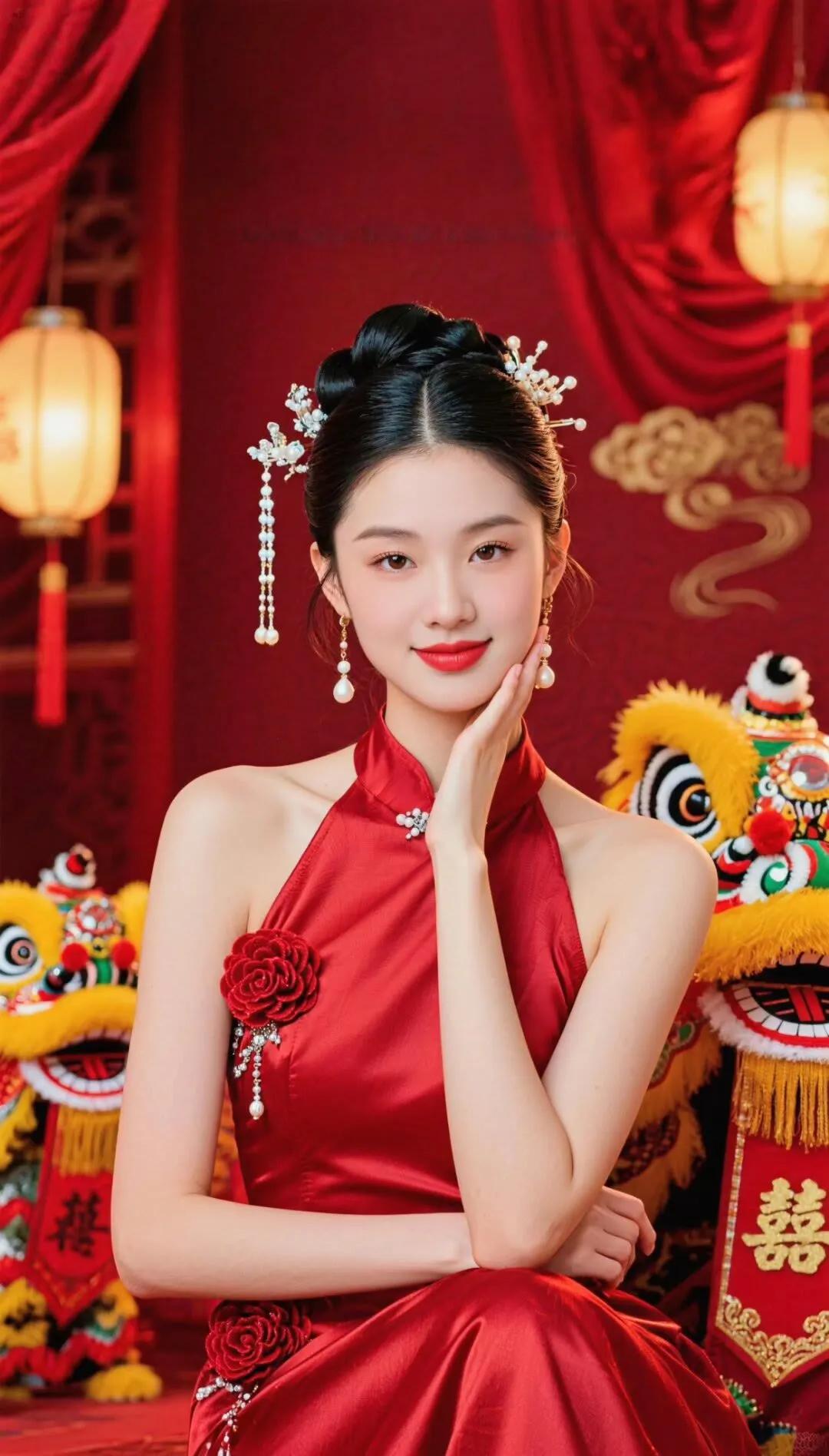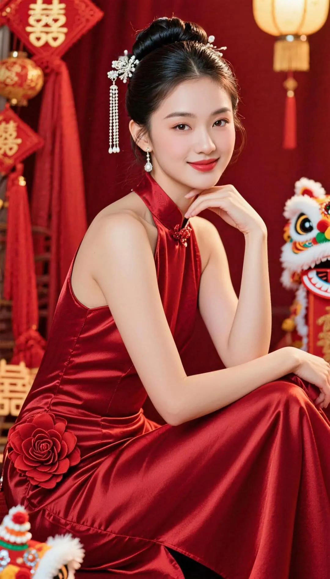 红衣美人,气质如兰,韵味十足!
