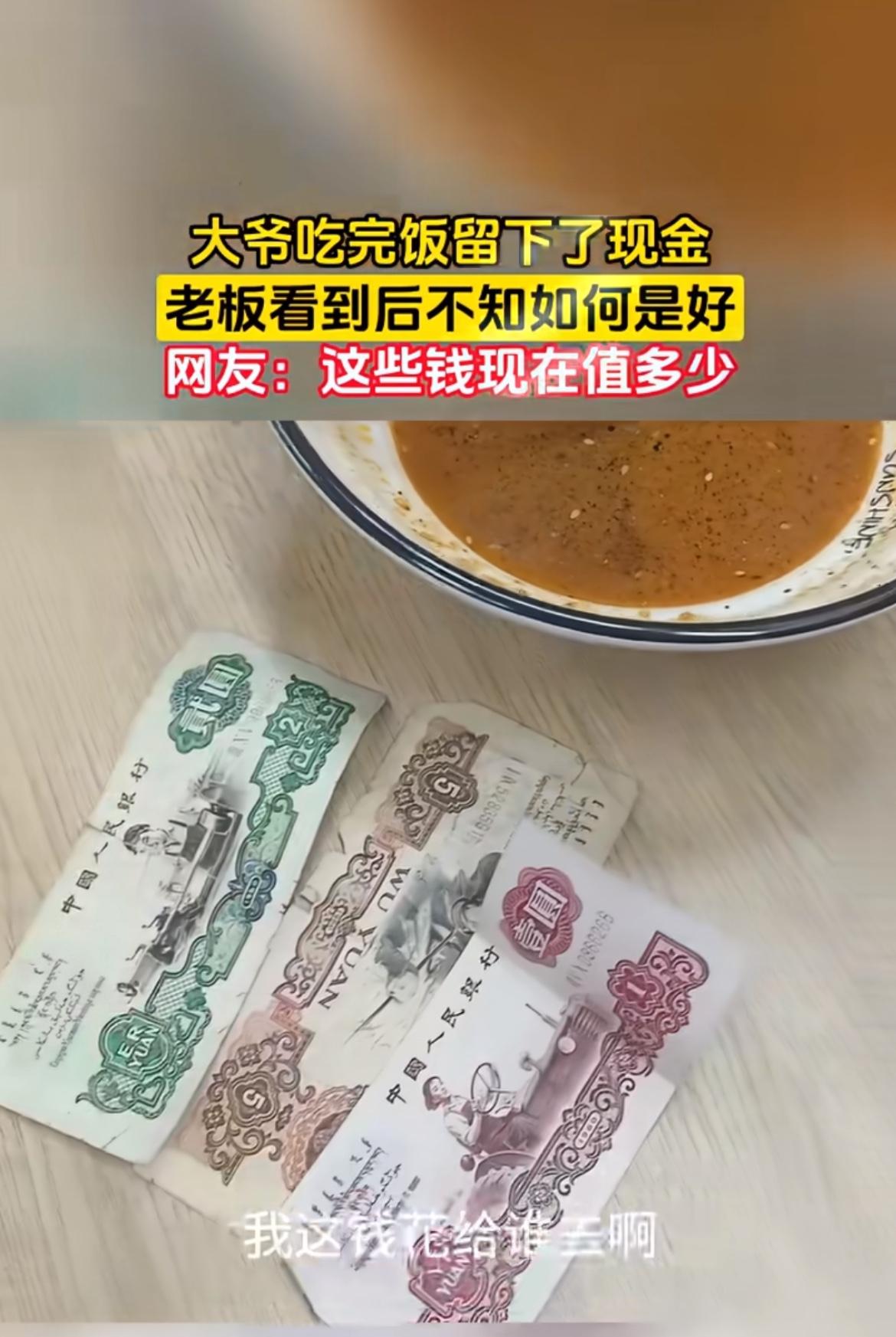 大爷吃完饭留下老钱,可把老板愁坏了,这花不出去啊。现在好多人手里都有老人留下的古钱币,就像老板遇到这情况。 近几年古钱币行情挺火,不同的古币价值差异很大。像广东省造光绪元宝双龙寿字币能值180 - 360万,大清银币长须龙值180 - 320万。不过也有被低价骗走的例子,苏北有个老人守了20年的硬币“黑皮本”,就被160块忽悠走了。老板也不知道大爷留下的老钱到底啥情况,这价值还真得好好研究研究,不然真让人头大。
