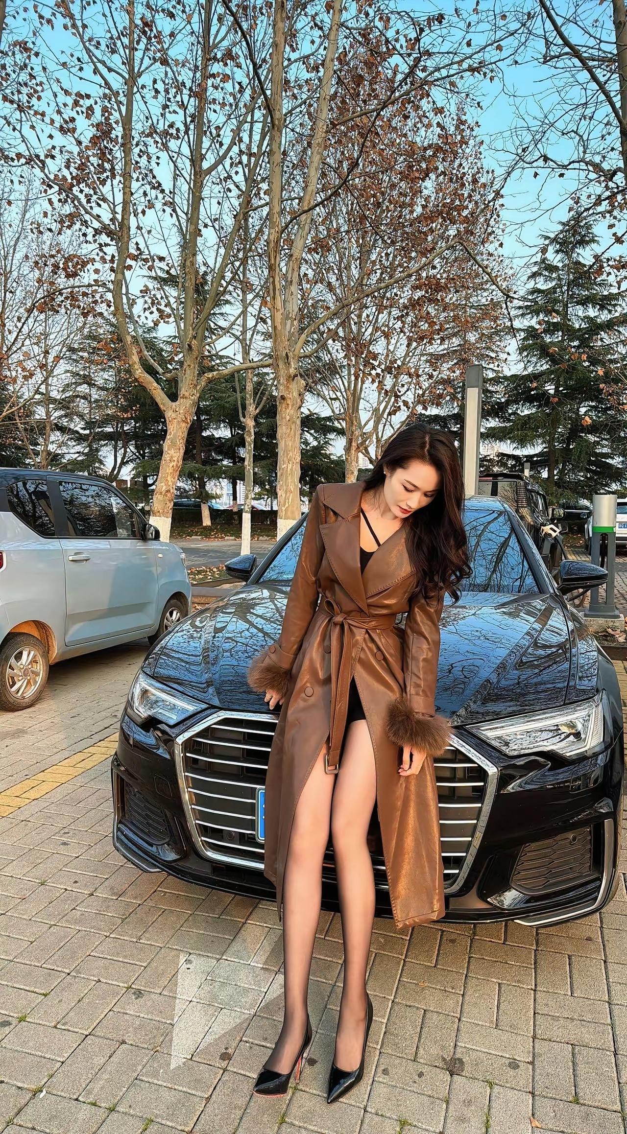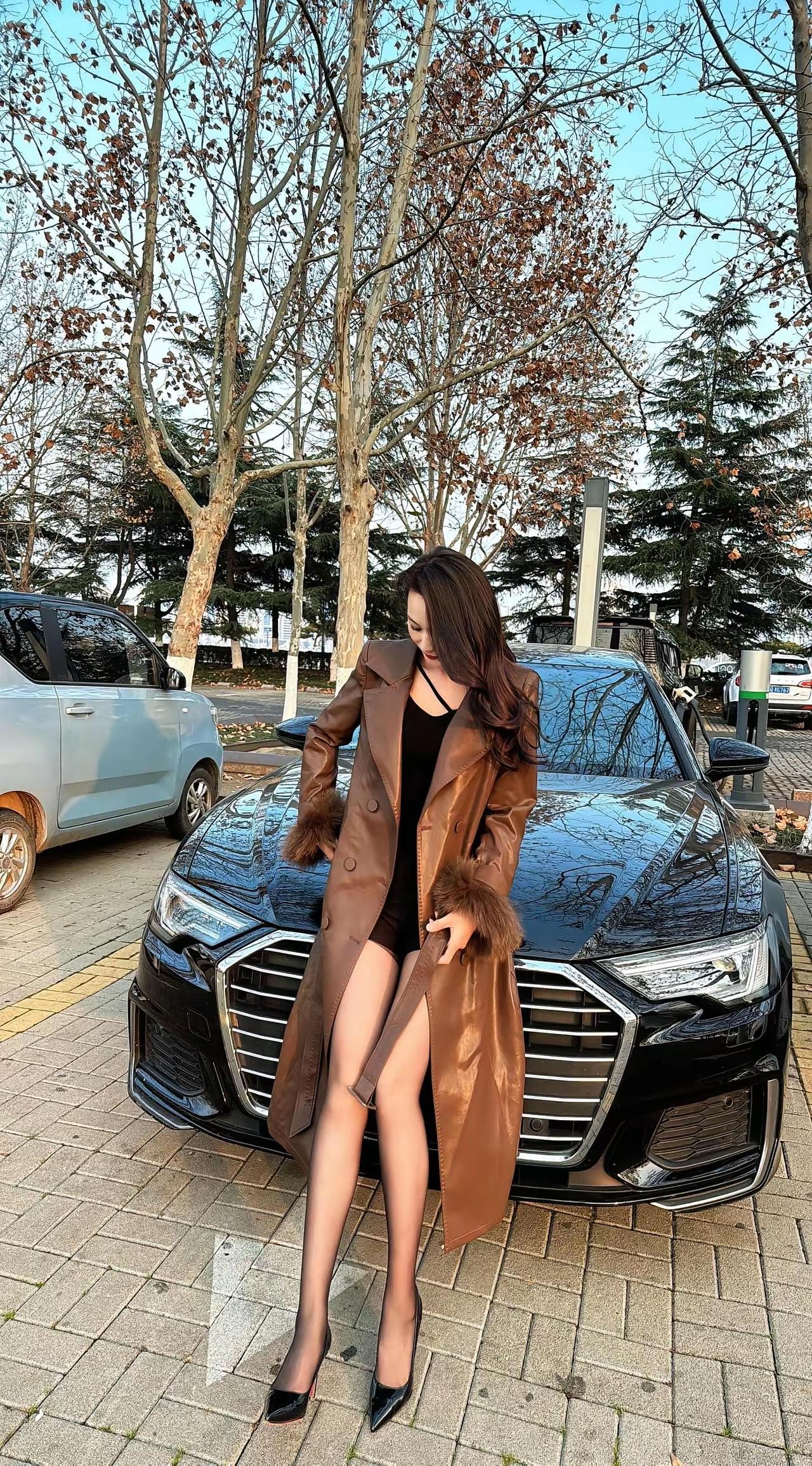 美女往这车前一站,就立马显出了美姿感来了。再加上这气候树木的点缀,拍照都变得很出片了。