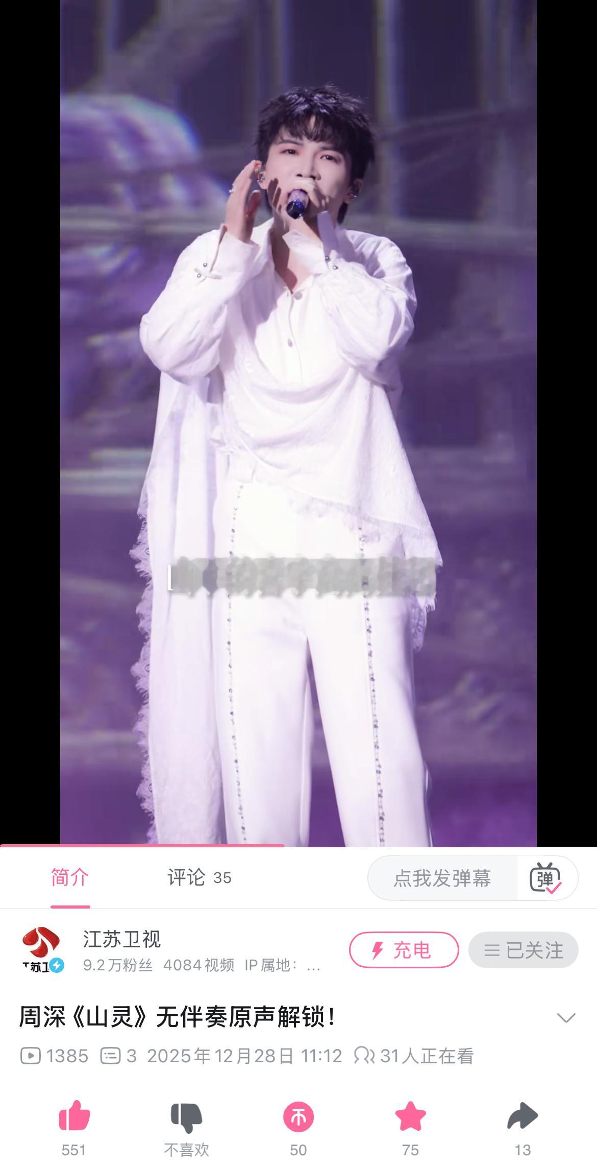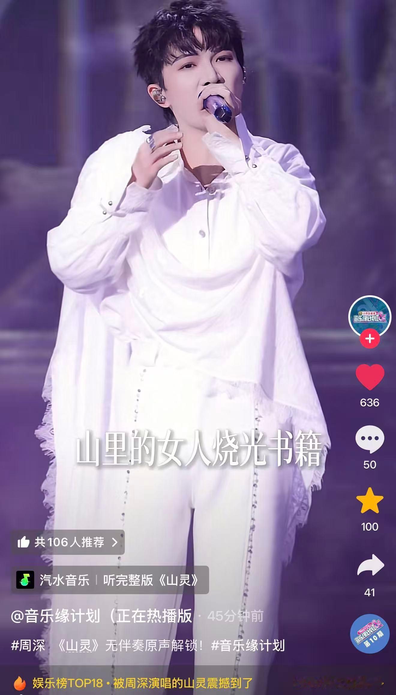 周深 📣 音乐缘舞台 📣缘计划和江苏卫视更新了《山灵》无伴奏舞台,米子们快来完整观看并多多三连具体见图