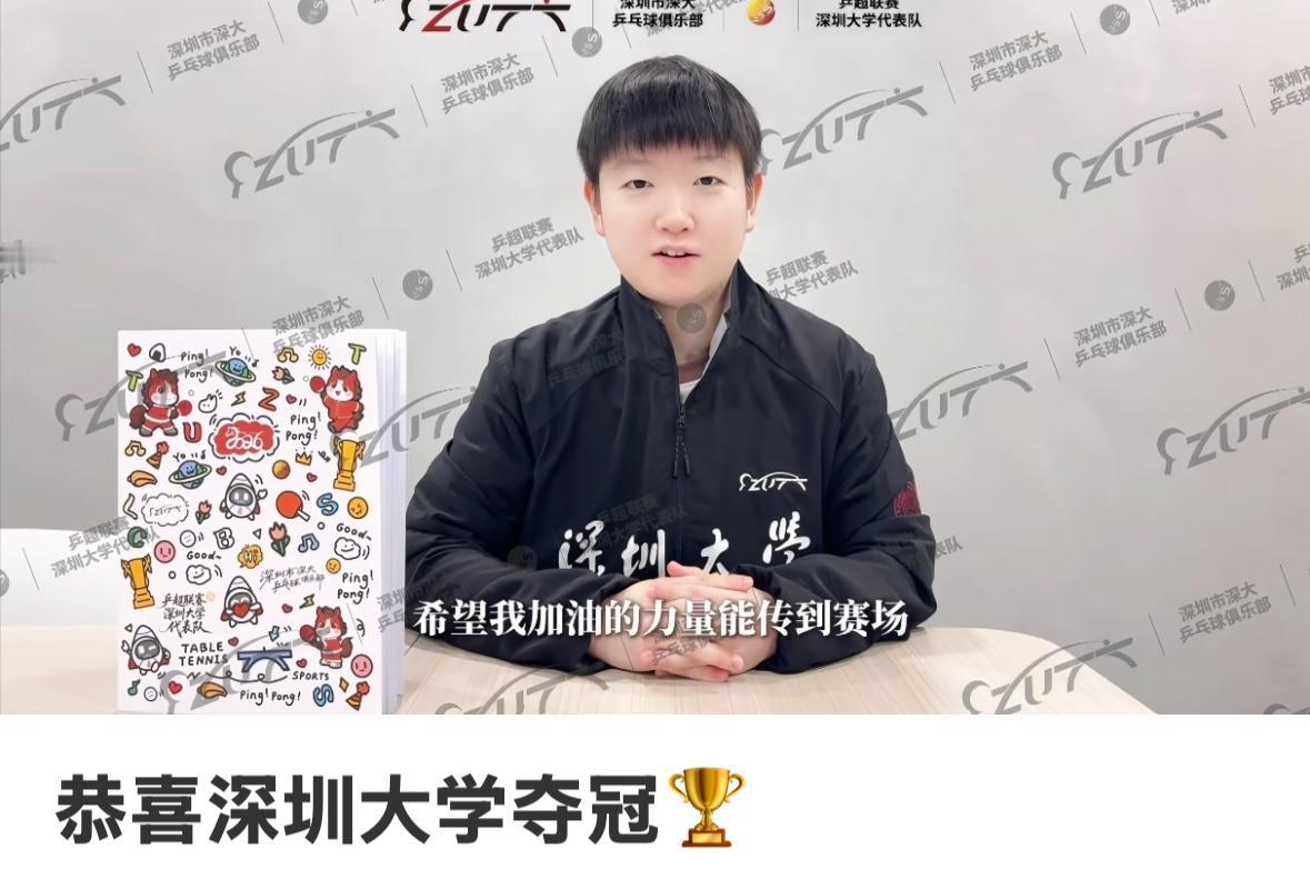 深圳大学教练总结夺冠经验“团结一心 惊喜不断,孙颖莎一直在短信指导团队” 12月28日,南京乒超联赛总决赛, 深圳大学3:1山东鲁能夺冠🏆, 深圳大学的教练总结经验: “我们对这个冠军就是顺其自然的, 孙颖莎在总决赛中第一时间 发短信告诉我她受伤了, 之后我们也是每天沟通, 赛前我们在准备会中强调 , 团结一心,惊喜不断, 这份荣誉来之不易, 是小将们拼搏的结果, 本来大比分2:0的时候,我的心 已经定了, 但一看莎莎已经发来无数条短信, 这就是团结一心的力量, 孙颖莎的心一直和我们在一起!” 想起莎莎妈妈说, 孙颖莎的信息多到我的手机 都卡了,哈哈哈😂…… 太可爱啦莎莎! 感觉莎莎和我们一样, 一直关注着比赛进程, 肯定会布置第三盘拿不下来, 第四盘怎么打? 打到决胜盘怎么打, 福往者福来, 爱出者爱返, 莎莎虽然在康复, 但心系赛场, 敢于给小将机会, 深圳大学珍惜球员, 球员也感恩球队, 恭喜深圳大学, 莎莎说过, 一群人才能走得更远!