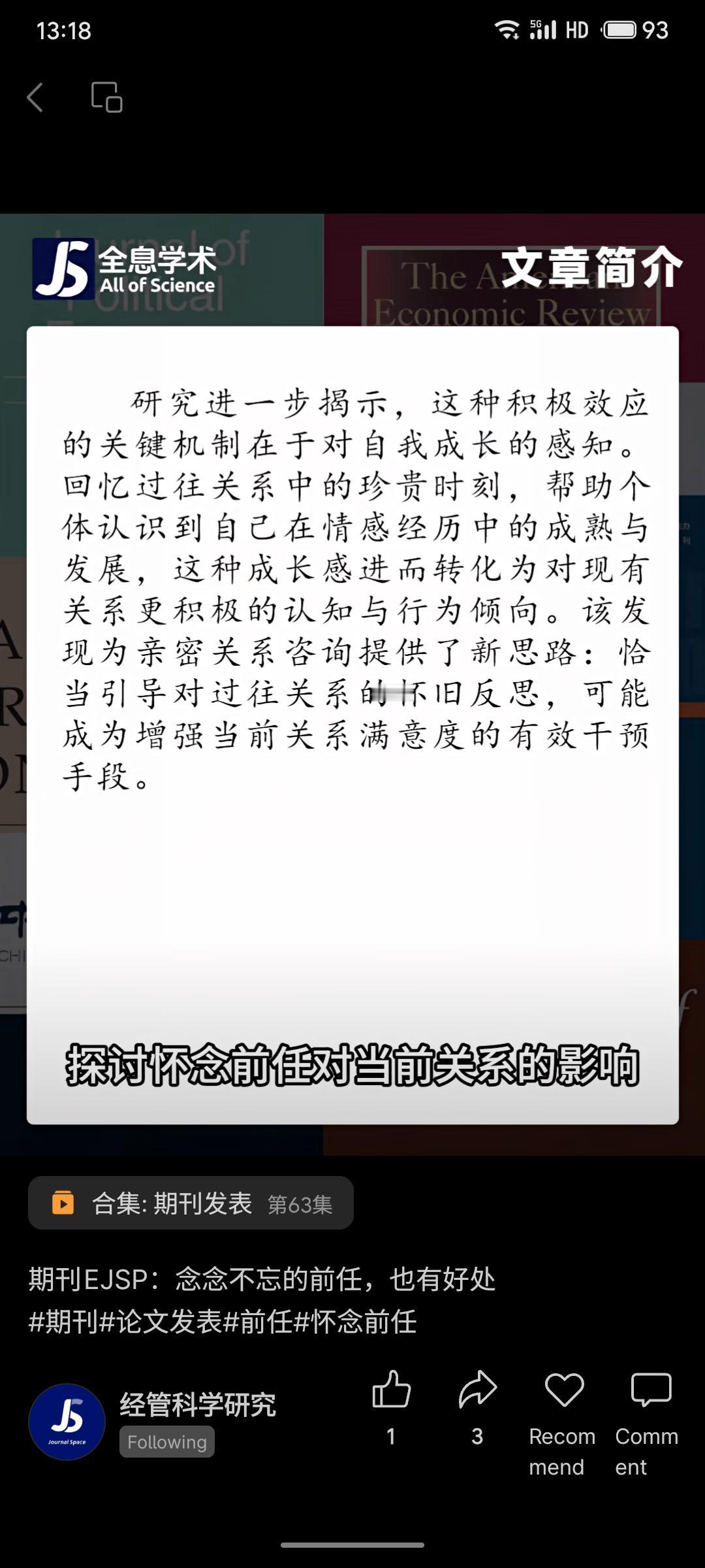 发表于《The Journal of Psychology》的一项研究指出,适度怀念前任可能对现有亲密关系产生积极影响。其关键机制在于,通过回忆过往珍贵时刻,个体能感知到自我情感成长的历程,这种成长感会提升对当前关系的满意度与投入意愿,为关系咨询提供了新视角。