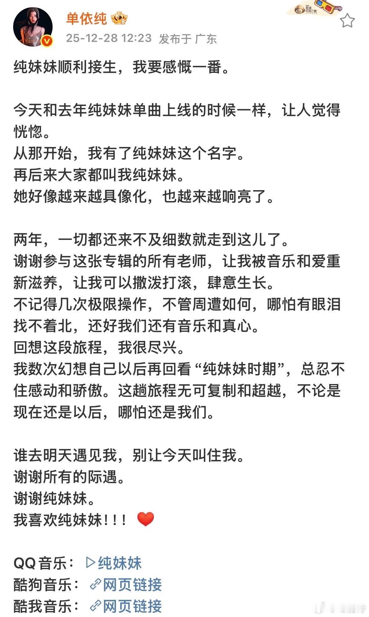 单依纯发新歌 狠狠被拿捏了!二专《纯妹妹》收录十首歌还有四首全新曲目,每一首都好听得不像话,对音乐的用心全藏在旋律里❤️
