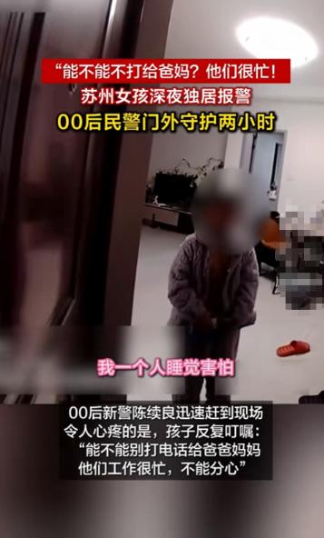 “懂事的让人心疼”!苏州,4岁小女孩深夜独自一人在家,打110报警说:“警察叔叔,我自己一个人害怕,你们能来陪陪我吗?00后值班民警迅速出警!到达现场后,女孩反复叮嘱:“别给我爸妈打电话,他们很忙,工作的时候不能分心”! “警察叔叔,我一个人在家害怕,你们能过来陪我吗?”深夜的苏州,一通奶声奶气的报警电话,让接线员的心瞬间揪了起来。 打电话的是个才4岁的小女孩,独自在家的她,没哭没闹,只是用稚嫩的声音寻求陪伴,更让人鼻头一酸的是,她反复叮嘱民警:“别给我爸妈打电话,他们很忙,工作的时候不能分心。” 接到报警的是00后新警陈续良,刚入职一年多的他,立刻放下手头的事赶了过去。 路上他一直回拨电话保持联系,逐栋排查小区,终于在一栋居民楼前听到了女孩轻轻的回应“我在这里”。 上楼推开门的那一刻,眼前的画面让他心头一紧:小女孩穿着单薄的睡衣,头发有点乱,眼神里满是不安,像是刚从睡梦中惊醒。 陈续良赶紧蹲下身,放柔了语气问她名字,还有爸妈去哪了。 小女孩小声说爸爸出差了,妈妈要上夜班,还特意强调妈妈上班不能接电话,所以才自己打了110。 说白了,这孩子心里又怕又懂事,怕的时候知道找警察求助,却又记着爸妈的嘱咐,不想打扰他们工作。 陈续良想起自己小时候,父母也常上夜班,自己也曾独自守着空屋子害怕,瞬间就共情了。 他没贸然联系女孩的父母,只是叮嘱孩子回屋加件衣服,还跟她说:“别着凉了,我不进屋,就在门口陪着你。”小女孩点点头,脸上露出了一点安心的笑容。 接下来的两个小时,陈续良就一直守在门外,隔着半开的门跟孩子聊天,从生日聊到喜欢的动画片,慢慢帮她放松情绪。 没过多久,女孩试探着说想回房间再试试睡觉,陈续良轻声答应,告诉她有情况喊一声就行。 其实这期间,陈续良已经通过社区信息联系上了女孩的母亲。 电话那头的母亲又惊讶又感激,说自己以为孩子早就睡熟了,没想到会害怕报警。 直到深夜11点多,女孩的母亲下班回到家,看到守在门口的民警,眼眶一下子就红了,进门一看,女儿已经沉沉睡去,小脸蛋安详得像什么都没发生过。 后来联系上正在外地出差的女孩父亲吴先生,他的语气里全是愧疚。 吴先生说,他们夫妻俩来苏州打拼没多久,就是想给孩子更好的生活,可工作太忙,常常到家时孩子已经睡了,陪伴的时间少得可怜。 这次实在是没办法,才让孩子独自在家。提到女儿不让联系他们的叮嘱,吴先生沉默了好一会儿,声音沙哑地说,其实孩子妈妈不是不能接电话,就是怕孩子总打电话影响工作随口说了一句,没想到孩子记这么牢,还想着体谅他们的辛苦。 这件事让陈续良也很有感触,他说这次出警是自己从警生涯里难忘的一课。 以前觉得警察就是处理案件、维持秩序,现在才明白,很多时候他们守护的是一种“安全感”。 尤其是年末加班高峰期,像这样的老人、小孩独居求助警情会明显增多,他也希望大家真有需要时别犹豫打110,更希望社会能多关注外来务工家庭子女的情感陪伴问题。 这么小的孩子,本该是黏着爸妈撒娇要抱抱的年纪,却已经学会压抑自己的恐惧去体谅父母的辛劳。 这份懂事从来不是什么成长的勋章,而是藏在城市化进程里,无数家庭在生存与陪伴之间的无奈拉扯。 还好有陈续良这样的民警,用两小时的默默守护,给这个寒冷的夜晚添了份温暖。 以上都是个人观点,对此您有什么不同的看法,可以在评论区留言讨论!!! 信息来源:扬子晚报