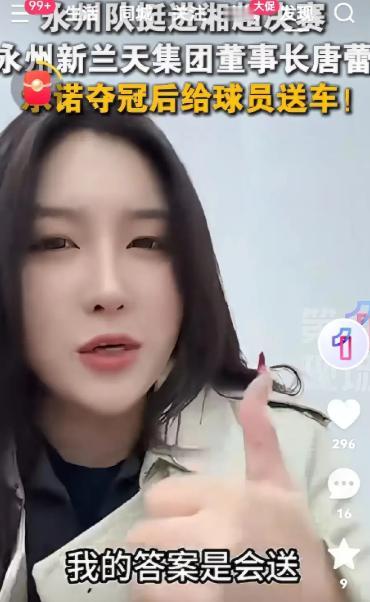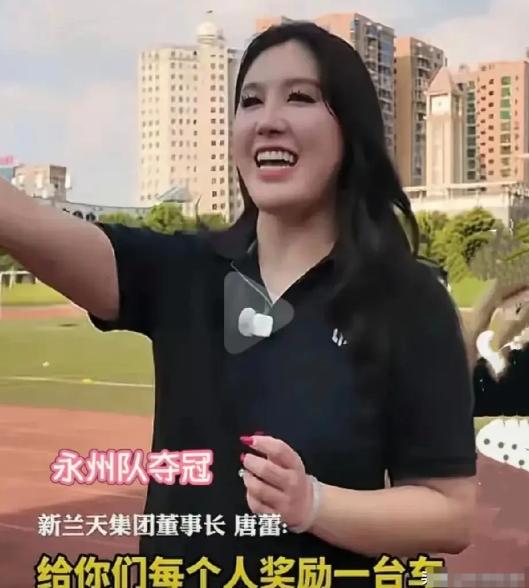 有钱能使鬼推磨!永州美女老板豪气承诺永州队夺冠,每人奖励一台车。在湘超比赛中,不被人看好的永州队奋勇争先,1:0战胜常德队,获得湘超联赛冠军。 最近湖南足球圈最火的事,莫过于永州队湘超夺冠和美女老板唐蕾的“送车承诺”了。 之前大家都在调侃“有钱能使鬼推磨”,说唐蕾这豪言壮语能不能兑现还两说,结果12月27号晚,长沙贺龙体育场的终场哨一响,永州队真就1:0战胜了常德队,硬生生把冠军奖杯捧回了家。 谁能想到,这支常规赛只排第五的队伍,能一路逆袭走到最后。 淘汰赛里他们先点球干掉娄底队,又在半决赛和长沙队死磕到点球大战第九轮,9:8险胜晋级,完全是黑马姿态。 决赛场上也丝毫不怯场,上半场彭玢一脚劲射击中横梁,差点提前打破僵局。 直到下半场第58分钟,谷文杰在角球混战中头球破门,这粒进球也成了全场唯一的得分,永州队就靠着这股拼劲,把1:0的比分守到了最后。 比赛一结束,全网的注意力立马从球场转到了唐蕾身上。 这位永州新兰天集团的董事长,早在今年8月就给球队放了话:只要夺冠,每人送一台车。当时不少人都当是玩笑,甚至调侃“不会是送雅迪电动车吧?” 面对这些质疑,唐蕾直接回怼:“我格局有那么小吗?” 还明确说球员能选集团旗下的零跑、东风日产,甚至标致雪铁龙,实打实的豪车承诺。 不光是送车,唐蕾赛前还把夺冠奖金从50万加码到108万,用真金白银给球员打气。 球员们也很给力,训练时都开玩笑说“射门是为了给爱车加油,防守是在守车钥匙”,这种轻松又热血的氛围,反倒让这支平均年龄不到20岁的学生军拼劲更足。 现在大家最关心的兑现问题,其实已经有了答案。 唐蕾并没有食言,这么说吧,这种调整反而更显用心,既避开了直接送车的复杂手续,又能让队员根据自己的需求选车,完全体现了她的商业智慧。 赛后发布会上她那句“承诺不是说说而已,兑现才是关键”,更是圈粉无数。 说白了,这事儿早就超出了体育比赛和物质奖励的范畴。 永州队从常规赛第五到冠军,靠的是不放弃的拼劲;唐蕾从放话送车到兑现补贴,守的是企业家的诚信。 现在永州城里,餐馆门口贴满了“永州夺冠,唐总送车”的横幅,训练场的灯光也比往常亮得更久,足球彻底成了凝聚这座城市的纽带。 更难得的是,唐蕾的做法给地方体育支持提供了新思路,不是简单挂个赞助logo,而是真正用实际行动激励队员,这种真诚的支持,比任何华丽的口号都管用。 难怪网友都说,这波“一诺千金”的操作,比夺冠本身还让人热血。 如今永州队已经拿到了参加下赛季中冠联赛的资格,唐蕾甚至还放话“再赢就再奖车”。 这支草根球队的逆袭还在继续,而唐蕾的诚信故事,也成了湘超赛场外最动人的风景。 以上都是个人观点,对此您有什么不同的看法,可以在评论区留言讨论!!!