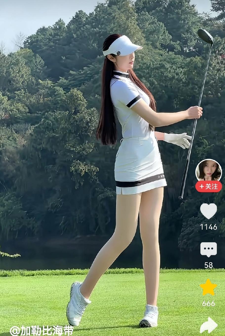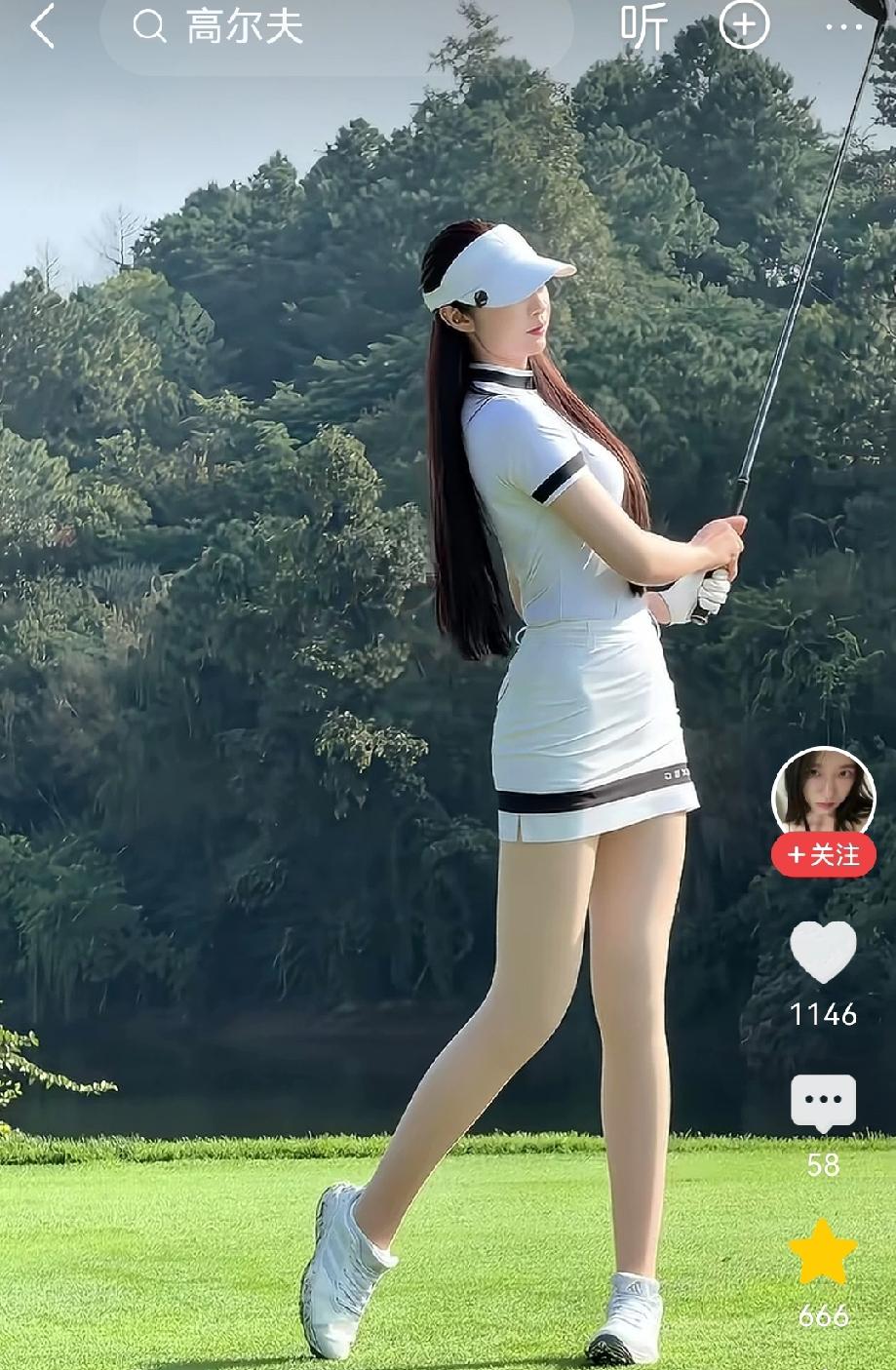 这才是真正的贵族运动,身材高挑的女生穿着高贵典雅的短裙,多1分嫌长,短1分嫌短。 从扭动婀娜多姿的身躯挥动高尔夫球杆,到球头击中高尔夫球,然后再把球打出去,随后收竿,一系列的动作尽显高贵典范。难怪被称为全球的贵族运动。