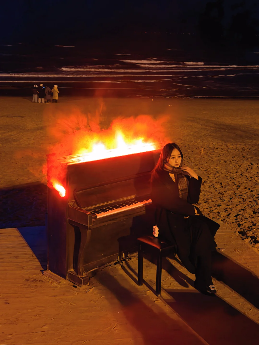 ▶️记得点单的时候找店员取一张海边火焰🔥钢琴的拍照小票,店员会依次叫号让每一个姐妹打卡海边钢琴!