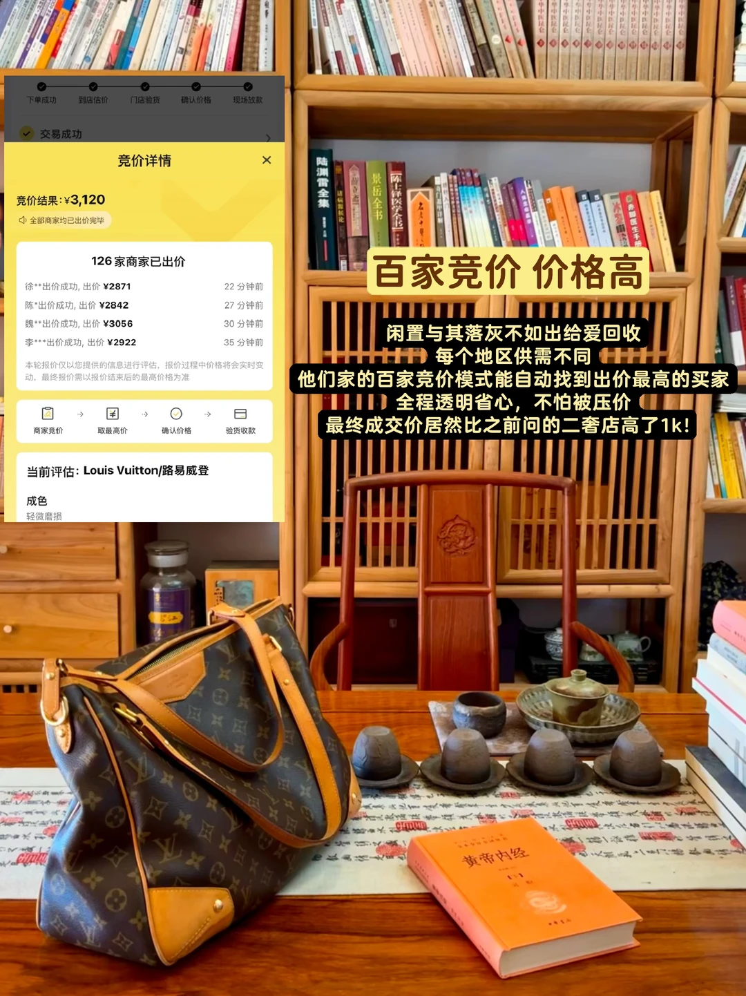 自从有小孩,很多包包不再适合我,便在爱回收上出掉了每个地区供需不同,他们家是百家竞价的模式,有上百家回收商家在线竞价,全程透明省心,最终成交价居然比之前问的二奢店高了1k!当面回收,价格满意当面即可打款,全程大概也就20多分钟,效率很高。全国有2000+线下门店,而且是全品类回收,包包、首饰、电子产品都可以,稳妥又方便~