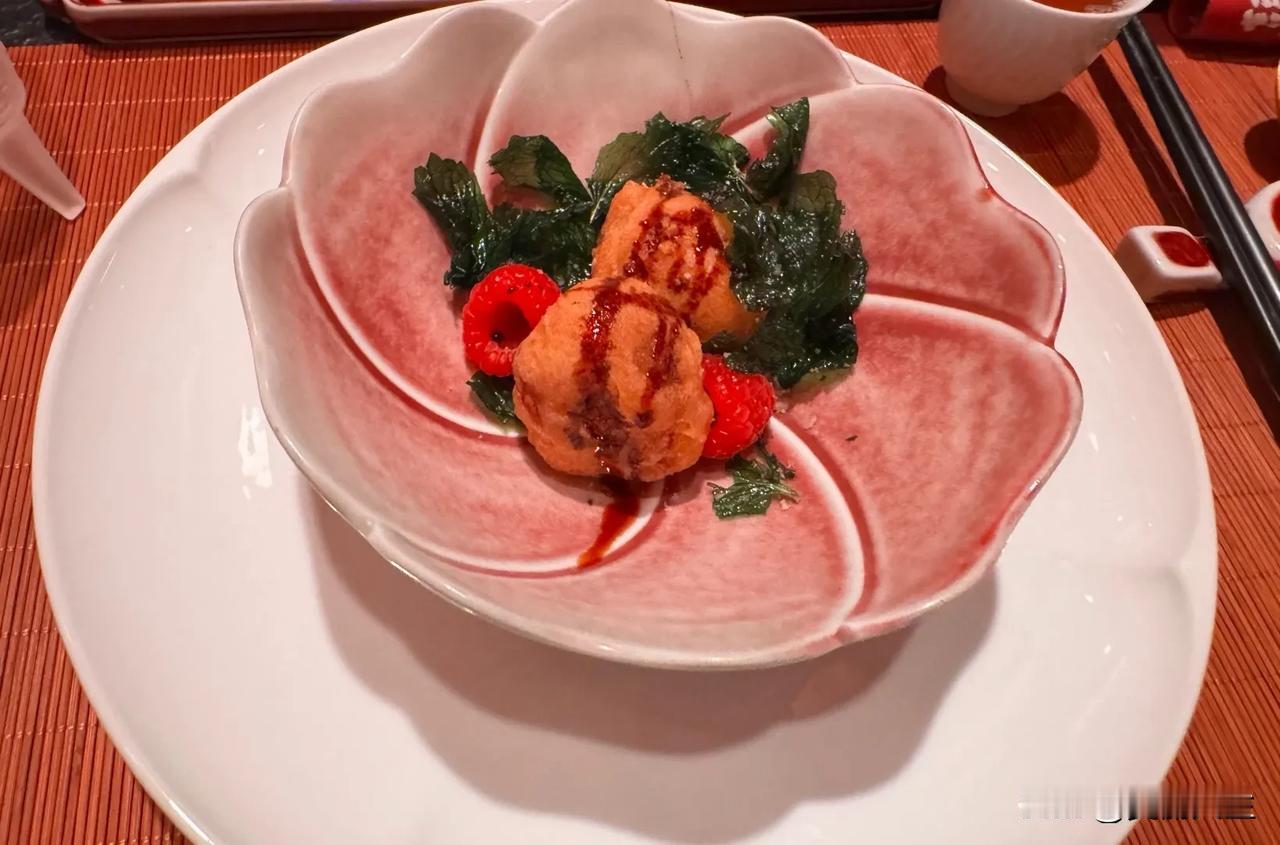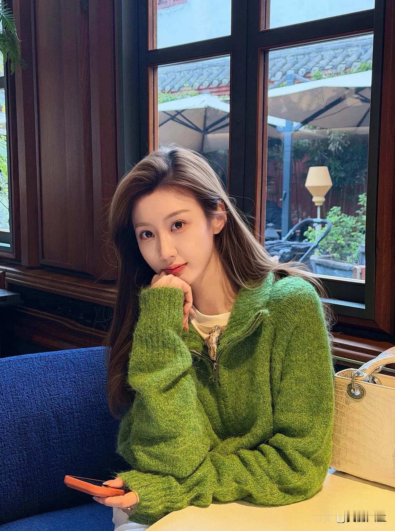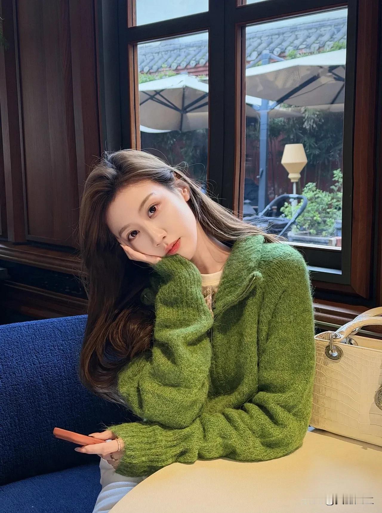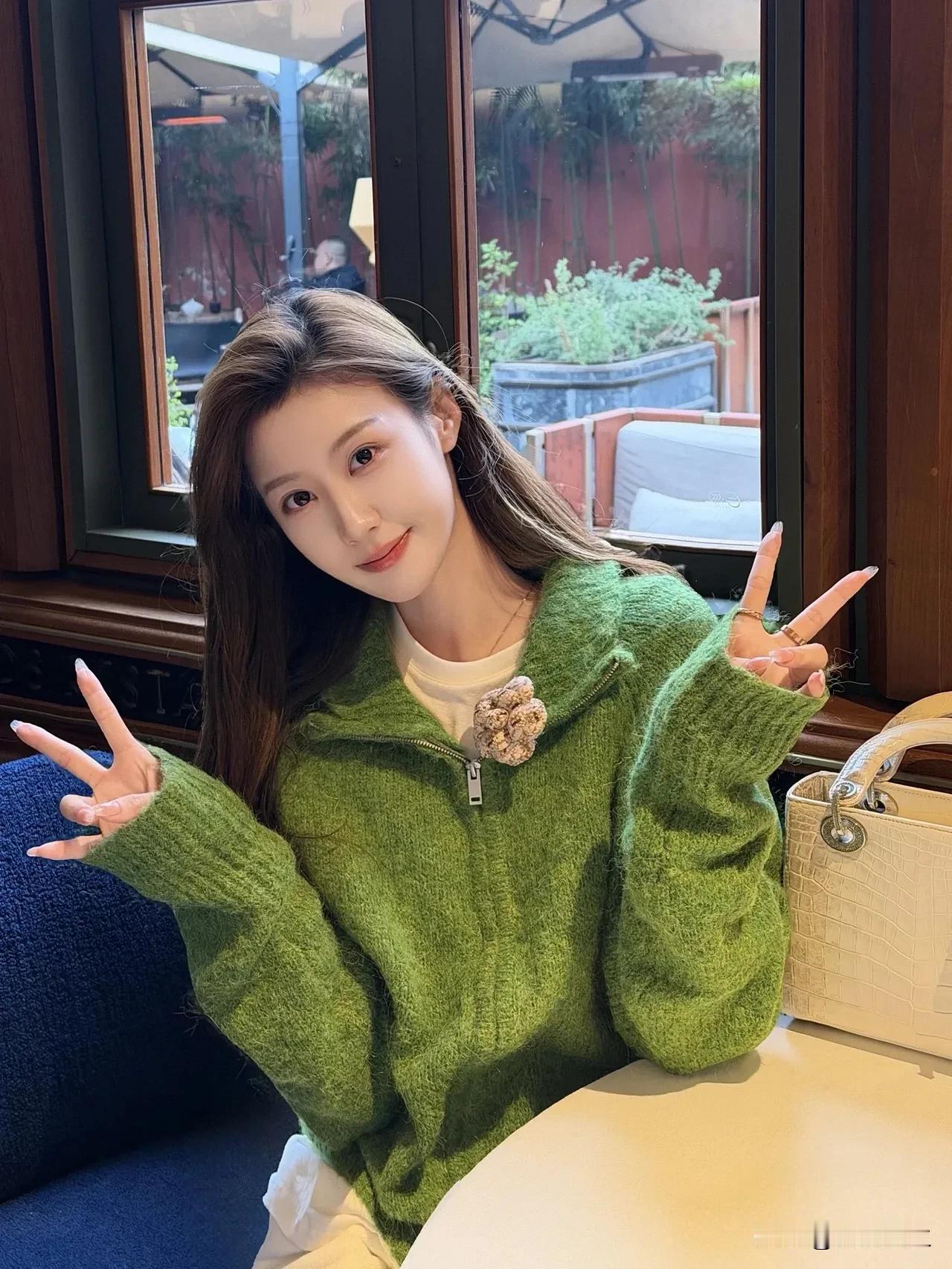 优雅餐厅里,她轻抚眼镜,静享美食时光。