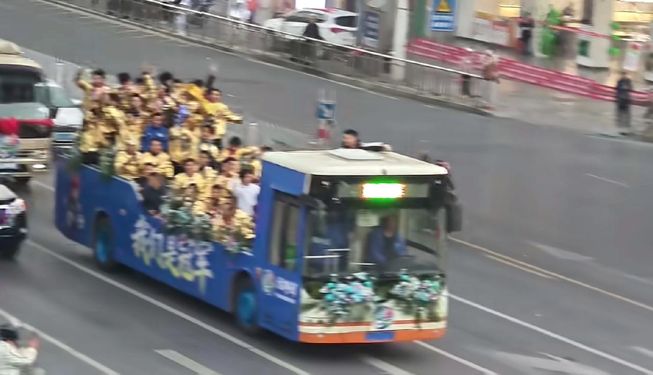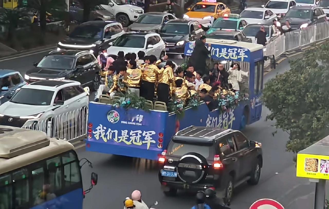 永州真的是“告发子”,连个巡游车都找不到,不得不把公交车的车棚拆掉,搞成露天敞篷车来做巡游花车。 估计大家看到这一幕,更加觉得永州拿到湘超冠军是相当不容易的,而且永州也确实需要这个冠军。 希望这个湘超的冠军给予永州不仅仅是一个冠军城的头衔,更希望湘超冠军给永州带来更多发展的资源,让永州能够在经济发展上赶超上去,成为湖南更靠前的城市。