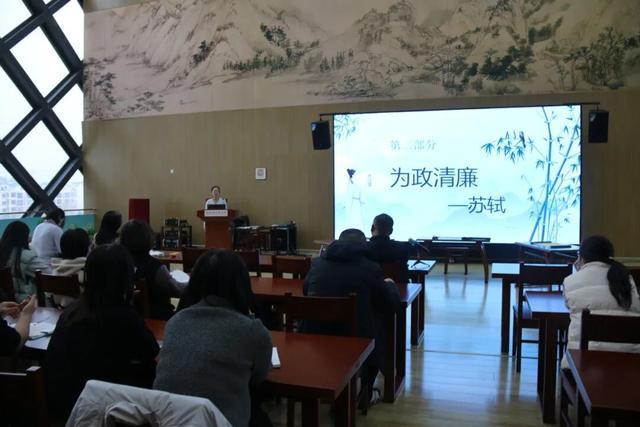活动伊始,由办公室精心编排的《眉山明月》情景短剧带领大家穿越千年,生动再现了苏氏家族日常读书明理、清正俭朴的生活场景。从苏洵的言传身教,到苏轼、苏辙兄弟的颖悟与思辨,深刻诠释了苏氏家族“读书正业、孝慈仁爱、非义不取、为政清廉”的十六字家风。