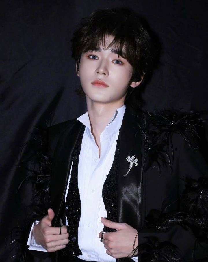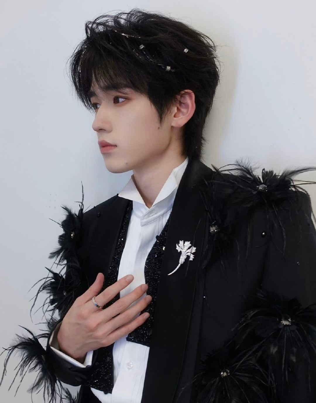 宋亚轩|2025新年音乐会造型,黑色礼帽搭配黑羽西服套装,佩戴CHAUMET高级