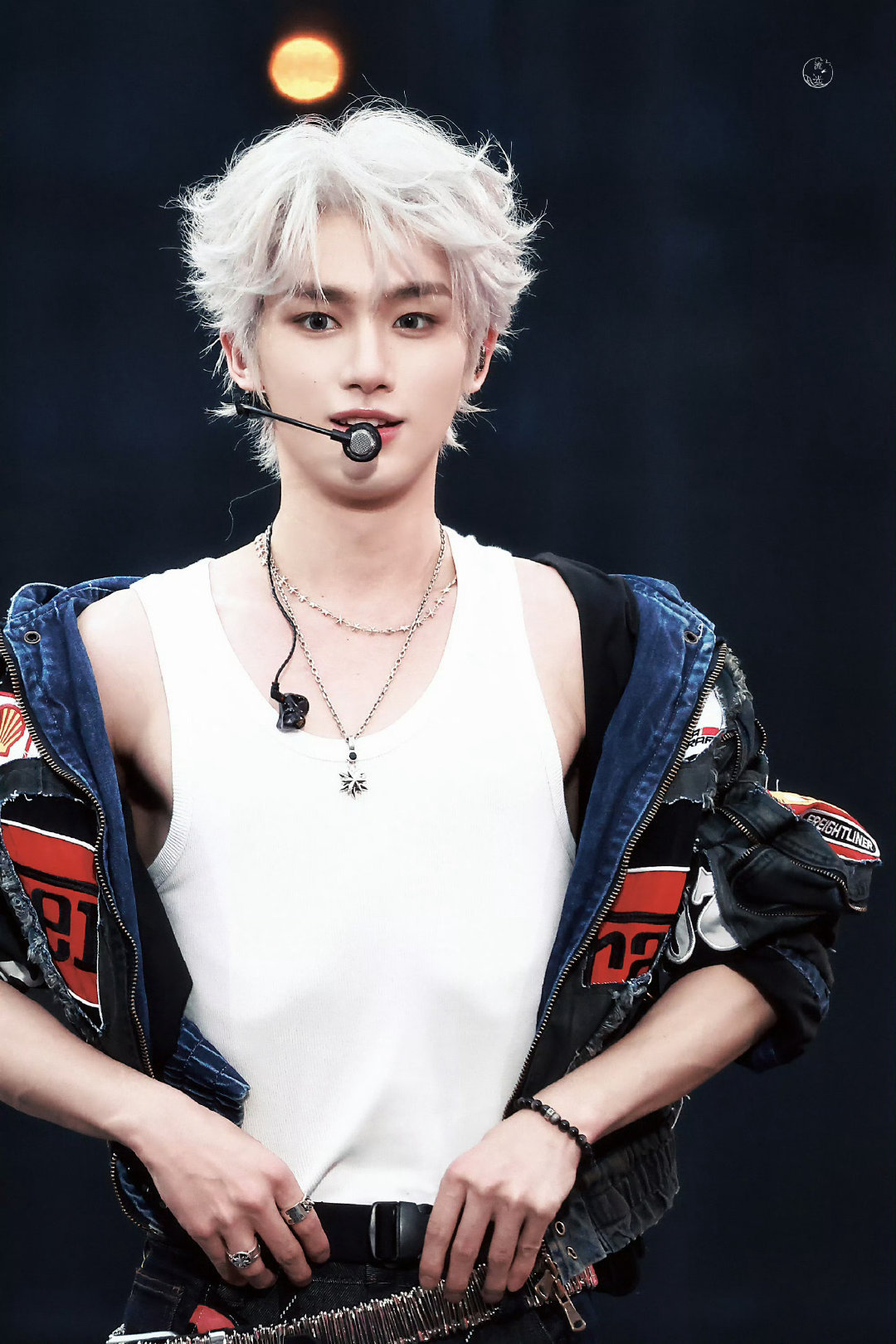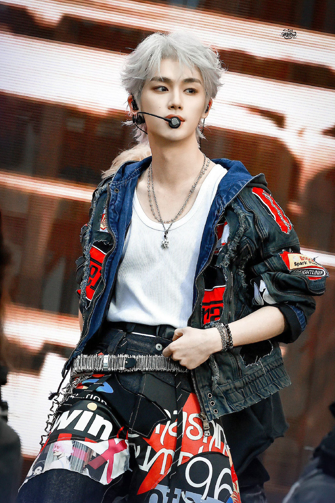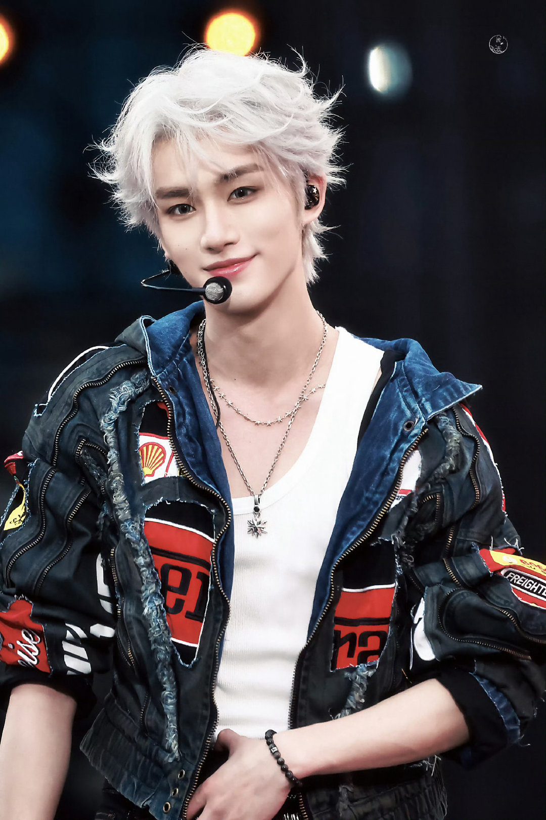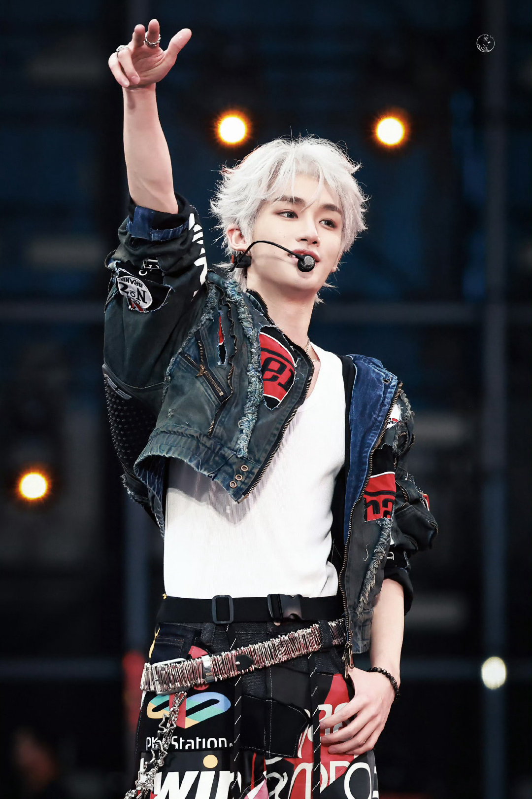 丁程鑫|2025新年音乐会造型出图,身穿Ourselvesremake 手工拼接牛仔套装,搭配白色微卷短发,时尚小丁,潮流满分💯