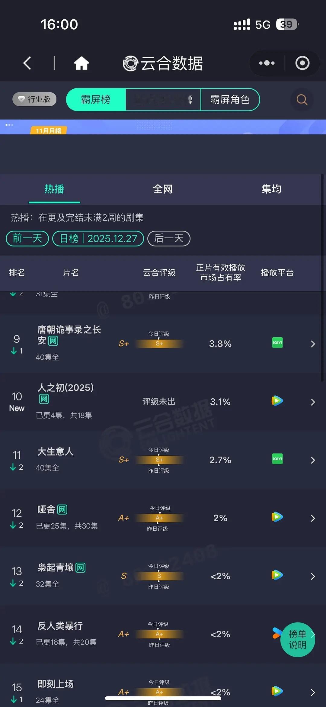 大盘将将上2?老舅 4300+ 骄阳似我 2400+罚罪2 2300+逍遥首日 6.9% 1300+ 双平台扑开人之初首日 3.1% 600+ 扑开