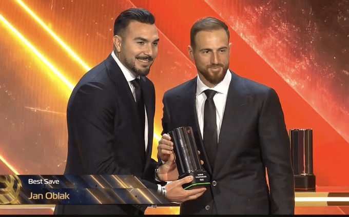 环球足球将年度最佳扑救:马竞门将奥布拉克获奖