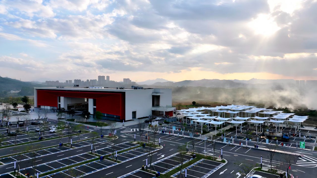 面对新能源出行浪潮,服务区打造公园式充电站,配备100个快充/超充车位,群“伞”式顶棚充满科技感,搭配绿植营造出逛公园般的轻松体验。