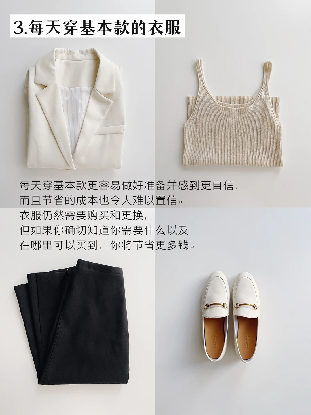 每天穿基本款更容易做好准备并感到更自信,而且节省的成ben也令人难以置信。衣服仍然需要买和更换,但如果你确切知道你需要什么以及在哪里可以买到,你将节省更多钱。