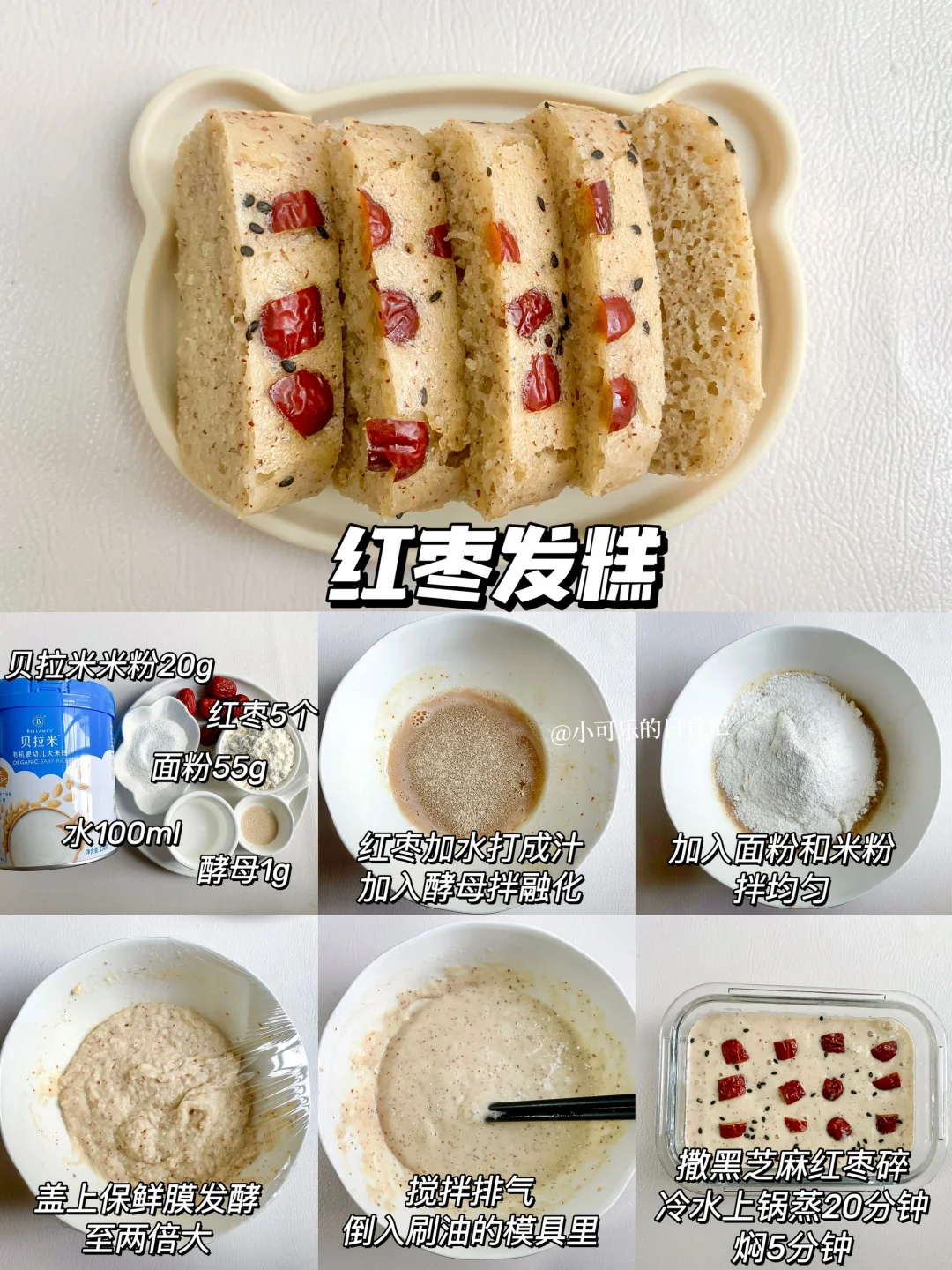 🛒高铁米粉20克、红枣5个、面粉55克、水100毫升、酵母1克
