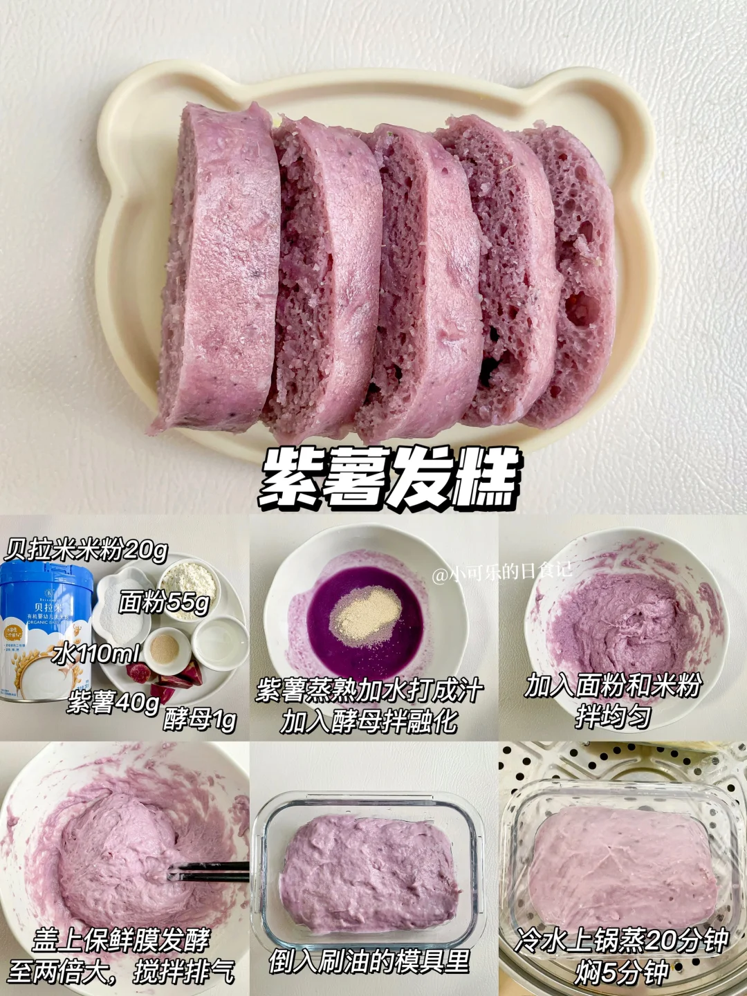🛒高铁米粉20克、面粉55克、水110毫升、紫薯40克、酵母1克
