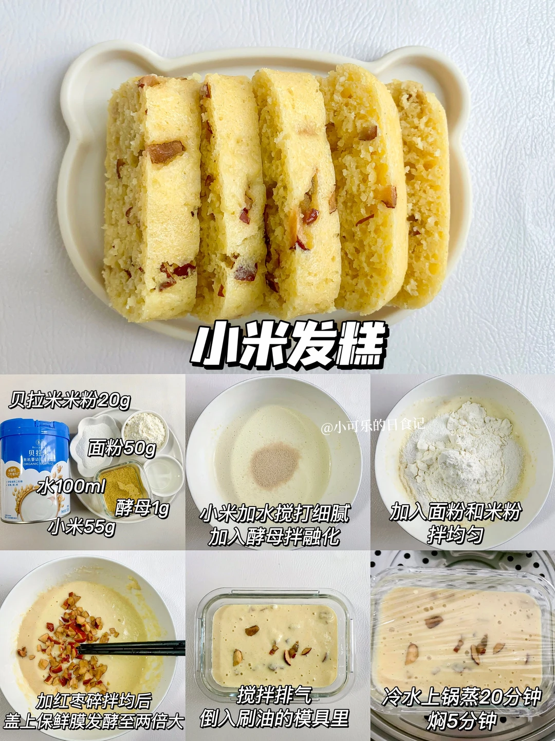 🛒高铁米粉20克、面粉50克、水100毫升、小米55克、酵母1克