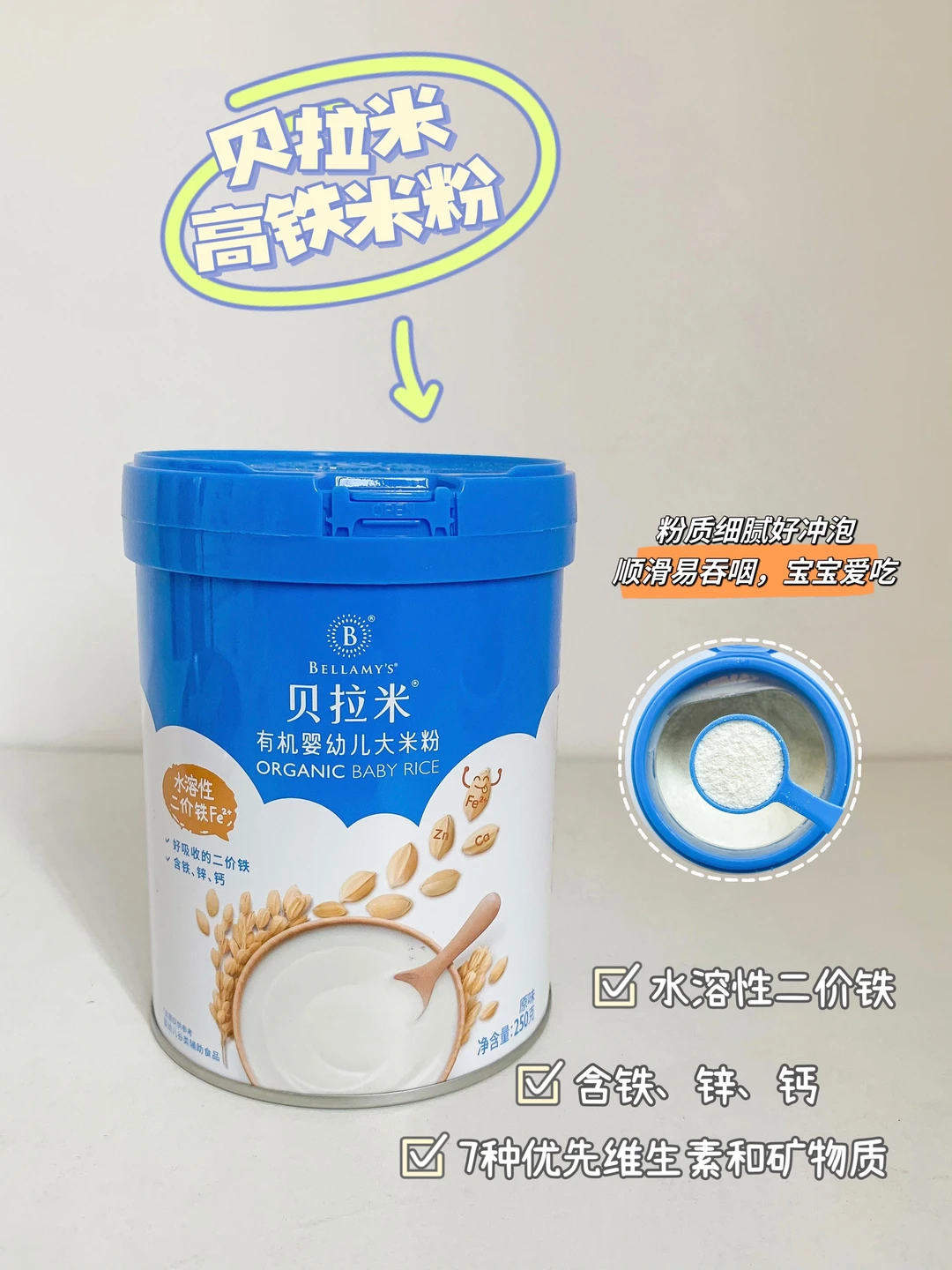 这款贝拉米有机高铁米粉,每100克中含铁量高达5.2毫克,而且添加的还是“水溶性二价铁”,更易于被宝宝吸收。
