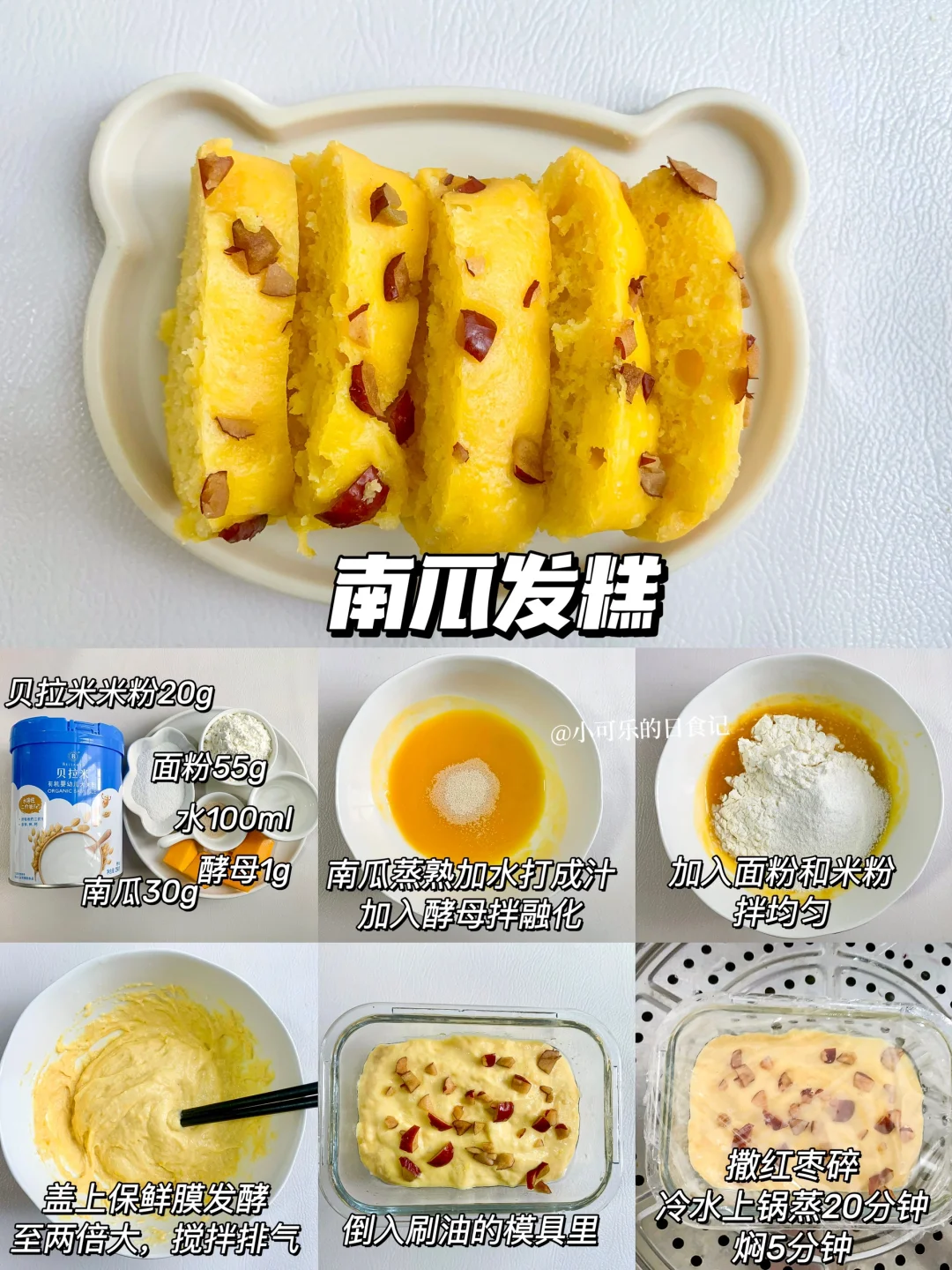 🛒高铁米粉20克、面粉55克、水100毫升、南瓜30克、酵母1克