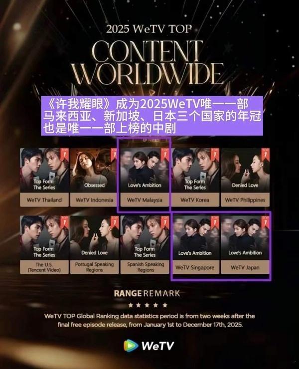 赵露思已经至少三个WeTV中剧年冠了!传闻中的陈芊芊2020年冠、星汉灿烂2022年冠,内地2025年全平台年冠的许我耀眼同样拿到了WeTV年冠,海外女顶就是这么环球输出,她的年冠之路还在前进