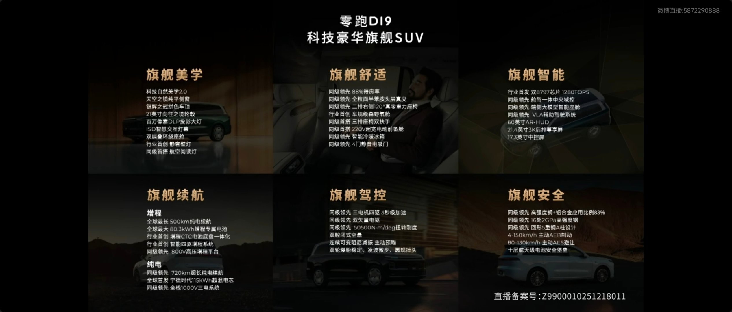 30万的500公里增程零跑D19打领克900如何?基础规格:5252*1995*1780mm,轴距3110mm(中大型SUV)布局:2+2+2/2+2+3发动机:1.5T(增程)总功率:540(纯电)/400(增程)kW纯电续航:500-720公里充电平台:800v-1000v电池容量:80.3-115kWh百公里加速:3-4s芯片:双高通8797芯片(驾仓一体)屏幕:10.25仪表+17.3中控+21.4后排娱乐屏+60寸AR-HUD+6后排娱乐屏轮毂尺寸:21寸轮毂外观颜色:绿/白/灰/黑/银内饰颜色:灰/棕/白灰内饰:大面积包/真皮座椅/打孔座椅/二排右侧零重力二排小桌板/三排扶手/第三排遮阳帘前车灯:LP投影大灯备厢:176L前备箱其他:全电动-6/50℃冷暖冰箱、2.7平米玻璃天幕+遮阳帘、23扬声器、50w无线充、220v前备仓教授觉得他这个参数还是比较符合对高端豪华suv的要求的,面向智己Ls9这种续航350km的产品依然有优势,而且还有纯电版本。对比领克900的话,有一定的纯电续航优势,你们觉得它上市会大卖吗?零跑零跑d19费翔代言零跑旗舰d19