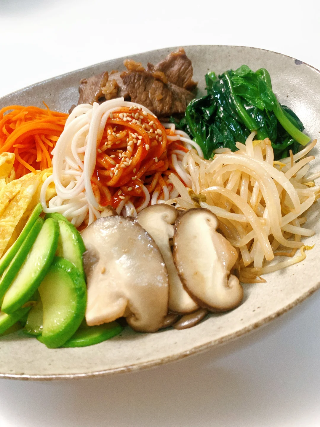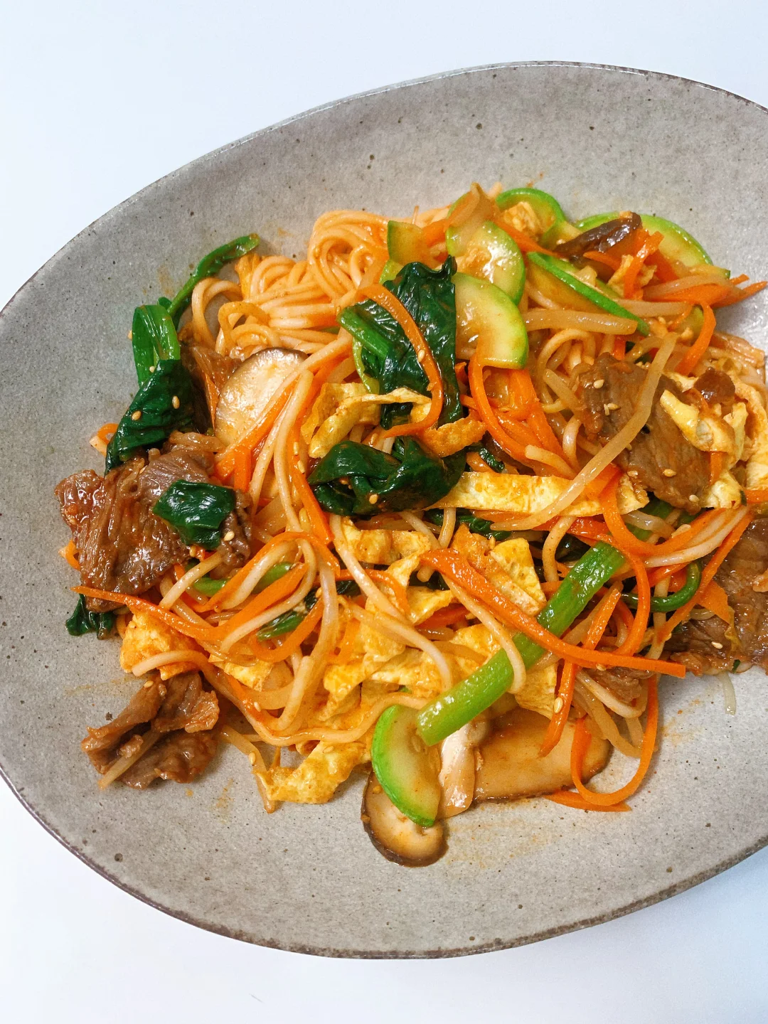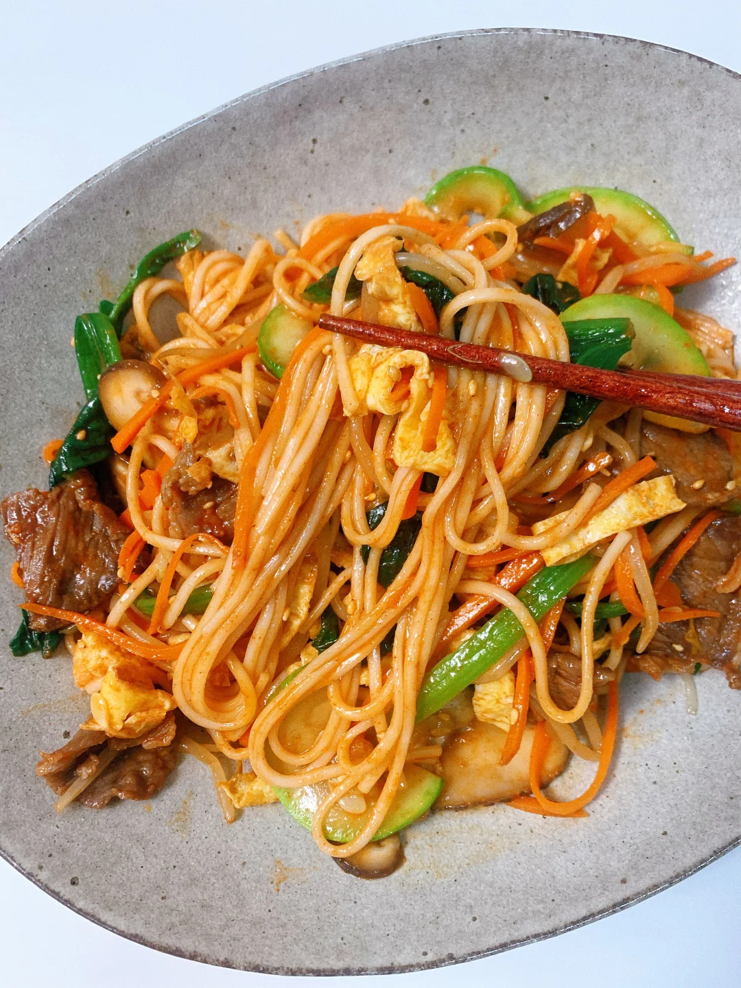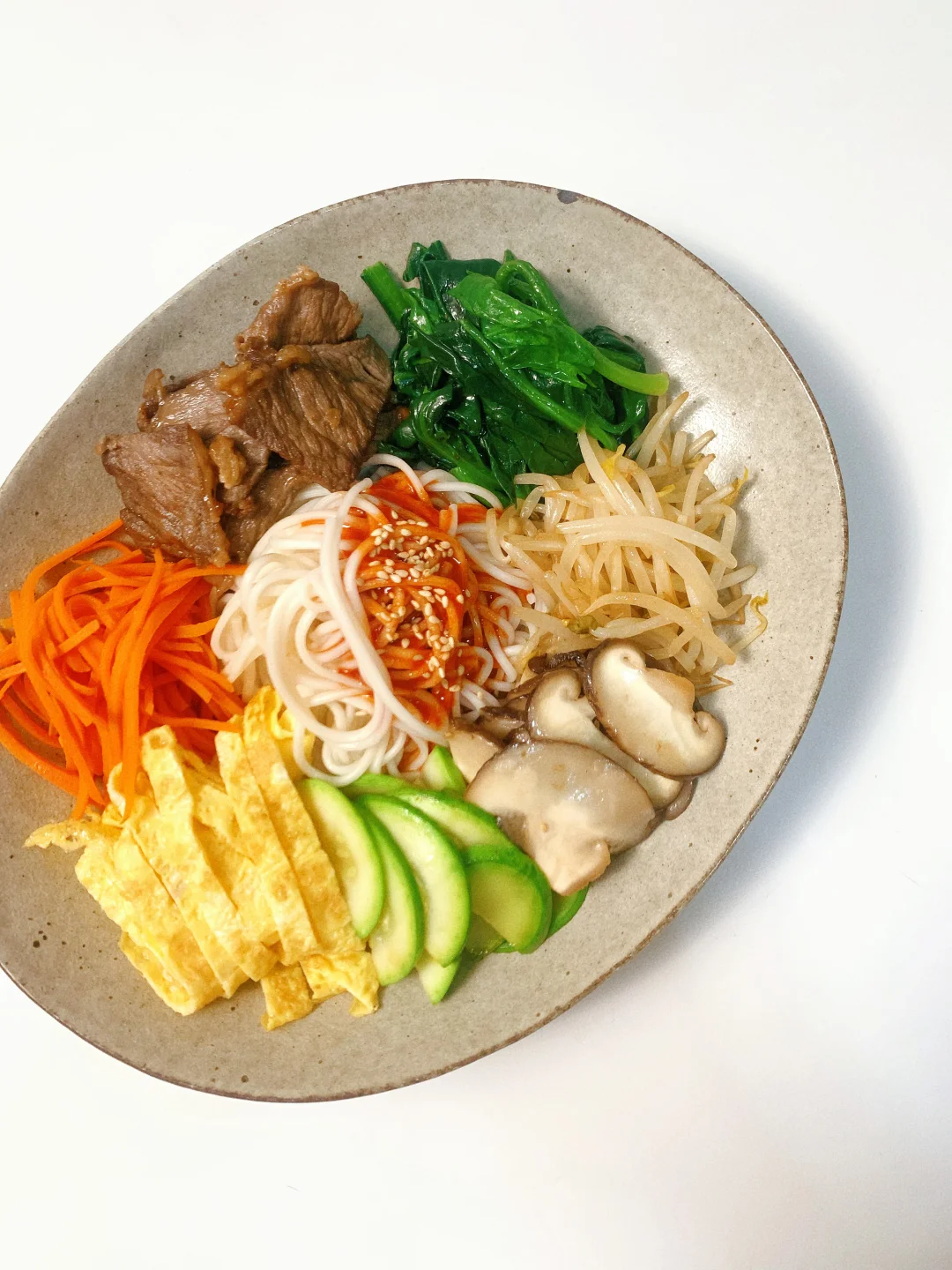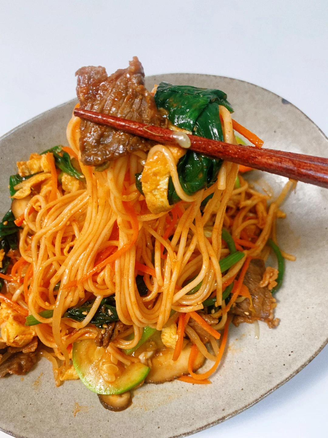 又是超爱的晚餐[蹲后续H],谁懂碳水的快乐啊,[向右R]主页收藏我的三餐食谱啊………………………………………………📤今日分享:韩式辣酱拌面 食材:鸡蛋,胡萝卜,菠菜,香菇,西葫芦,豆芽,牛肉,面条 🕒时间:10-15分钟 🔜难度:⭐ ✅做法见图片👆🏻👆🏻 ~减脂餐的终点🏁是家常菜
