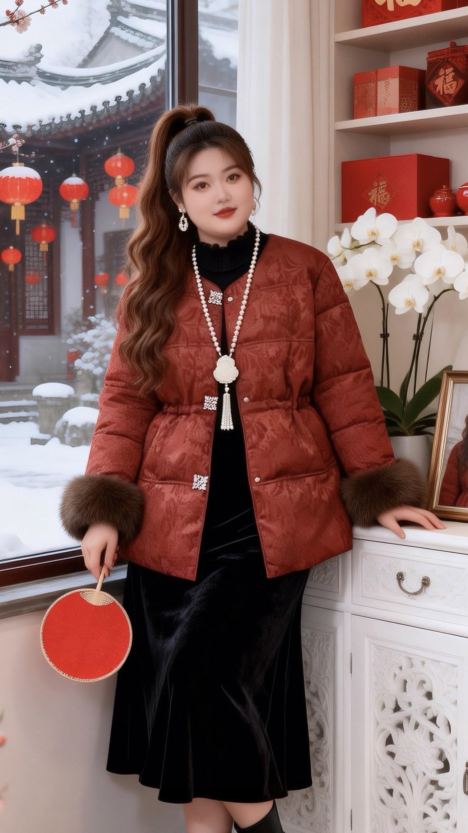 大码女装国风棉服 新年好运红我先穿上了冬日穿搭一周不重样微胖女生冬日衣服测评