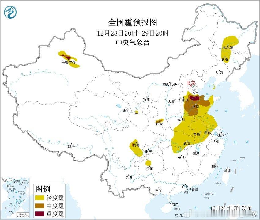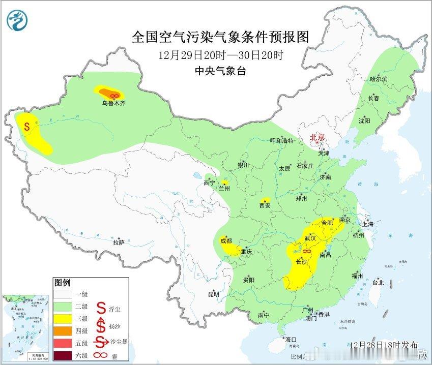 【雾和霾】今夜到明天,新疆天山北麓,可能出现大雾,包括乌鲁木齐,而且可能是雾和霾混杂。今天在冷空气到来前,陕西关中、河南、河北、天津、辽宁等地,污染堆积,多地出现了中度污染,部分站点出现重污染。今夜开始,未来3天随着冷空气南下以及31日降水增多,霾有望在南下过程中,先减弱再清除。