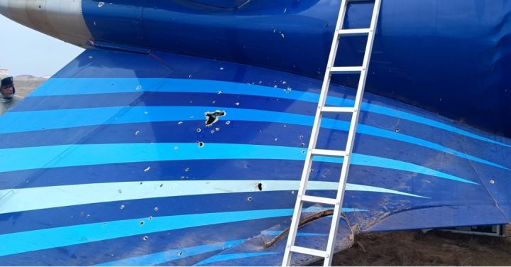 哈萨克斯坦交通部的报告显示,调查人员对坠机现场发现的外部异物开展了系统性鉴定工作,涵盖痕迹学、弹道学、爆炸技术以及火灾鉴定等多个专业方向。鉴定结果显示,现场未发现任何炸药残留痕迹,送检的三只氧气瓶亦未检出爆炸迹象。初步结论认为,飞机机身损伤可能由弹药碎片等致伤元件撞击所致,但目前尚无法确定相关碎片的具体来源。