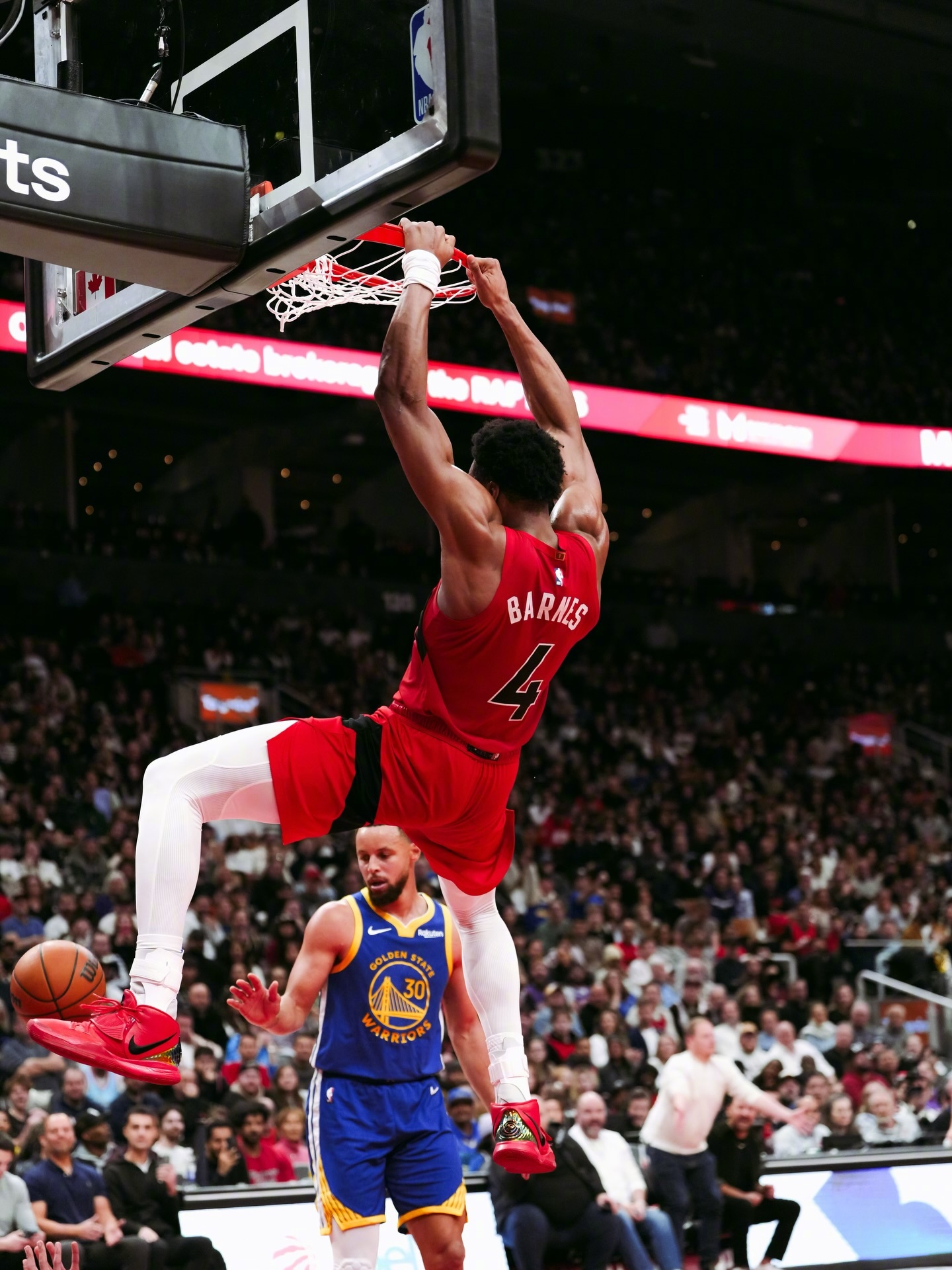 猛龙加时141-127击败勇士。斯科蒂-巴恩斯这场比赛打中锋,全场比赛17投11中,拿下23分25篮板10助攻3抢断1盖帽!!