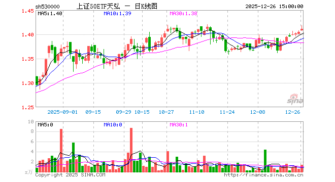 12月26日,上证50ETF天弘(530000)涨0.43%,成交额188.55万元。当日份额减少500.00万份,最新份额为10.98亿份,近20个交易日份额减少3800.00万份。最新资产净值计算值为15.50亿元。