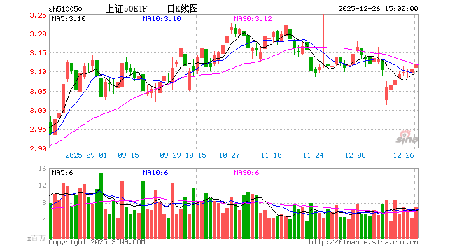 12月26日,上证50ETF(510050)涨0.42%,成交额22.37亿元。当日份额增加4.32亿份,最新份额为576.51亿份,近20个交易日份额减少3.00亿份。最新资产净值计算值为1798.48亿元。
