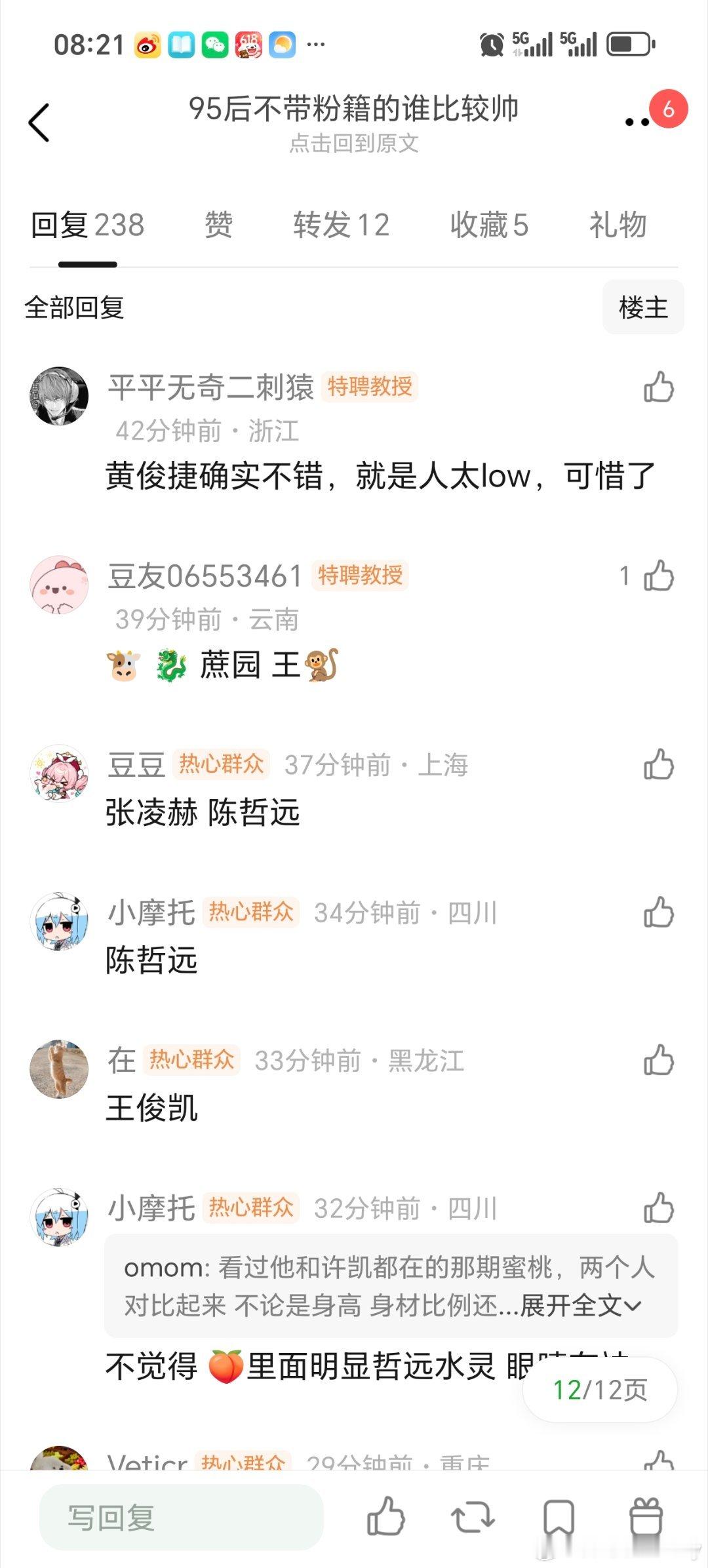 95不带粉籍比帅,贴主直接提名黄俊捷和王安宇,楼主提名最多的有陈哲远、王俊凯、李