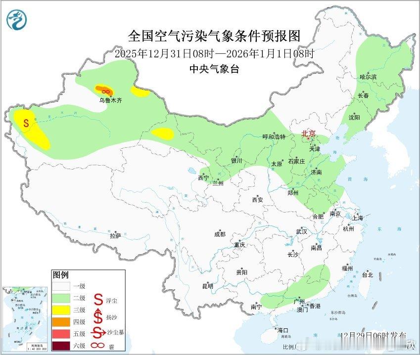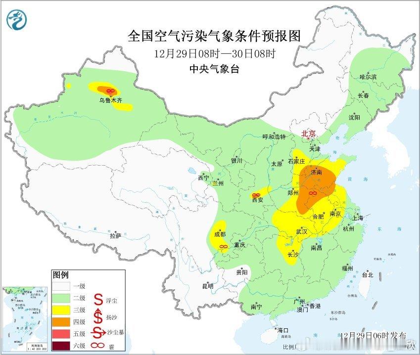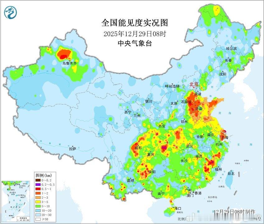 【雾和霾】今晨我国多地出现了分散的大雾天气。8时能见度,湖北老河口41米、贵州大方43米,出现特强浓雾。此外还有一些站点能见度不足100米,比如江西全南74米、浙江丽水82米、重庆巫山88米、贵州安顺94米、云南孟连96米。从昨晚到今晨空气质量变化看,随着冷空气南下,辽宁、北京、廊坊、天津一带明显好转。但是在河北中南部、山东、河南北部、陕西关中和山西汾河谷地,还有一定程度的污染,陕西咸阳、山西运城、河北衡水、河南濮阳、山东聊城、菏泽有重污染。今天冷空气继续南下,污染和霾向南转移,强度有所减弱。明后2天因为还有降水发展增多,对霾起到进一步的清除作用。后天中东部的霾有望被彻底清除。