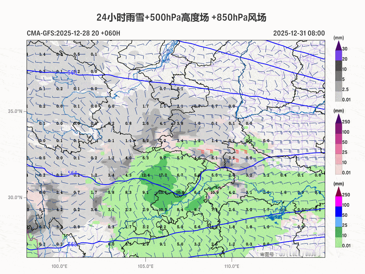 【雨雪发展】昨天到今晨,黑龙江北部、吉林东部、辽宁东北部出现降雪。今天受到冷涡影响,内蒙古东北部和黑龙江北部还有降雪。另外明天南支槽发展加强,与冷涡后侧甩出南下的冷空气相遇,从12月30日夜间-1月1日早晨,我国黄河以南有大范围降水过程。目前数值模式之间,依然有分歧。图4为官方报,图5为降水相态和形势场的对比,CMA为我国模式、ECMWF为欧洲模式、NCEP为美国模式,时效都是12月30日08时-31日08时。图6为降雪量预报对比。图7-9为类似,时效为12月31日08时-1月1日08时。总体上,欧洲报的雪更多,范围相对偏北,美国报偏南偏弱,我国报居中。这个系统偏差也体现出欧洲报的暖湿气流偏强,美国报的暖湿偏弱、冷空气片偏强。目前变数较大的区域,河南中东部、安徽北部和东部、江苏一带,水汽、动力、温度条件,依然不是完全保证会下雪。后期还是要看南支槽发展的强度,影响槽前南风水汽输送的多少和偏北程度。总之,还要继续观察。目前美国报比之前,有所调强。因此郑州、合肥、南京下雪的概率加大。欧洲报也进一步调强了暖湿,使得山西的降雪也调增。不过这个并不保险。太原看似进入降雪区边缘,但只要暖湿稍微弱一点,降雪就没了。这次降雪靠谱的区域还是宁夏南部、甘肃东部、陕西延安以南地区、山西南部、河南西部、湖北西部和北部、安徽西部和南。